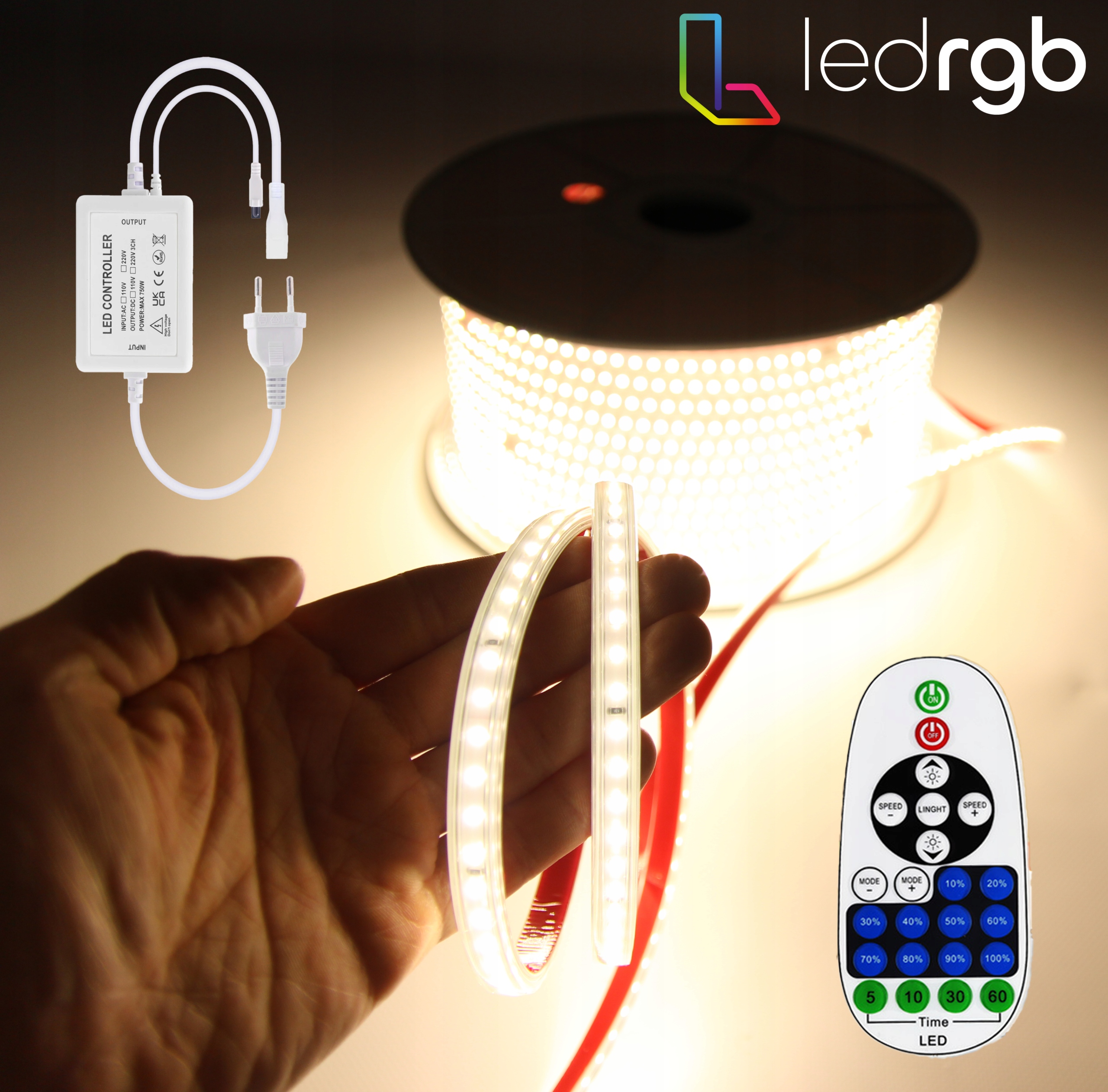 Ми представляємо інноваційний контролер з ІЧ-пультом дистанційного керування, який обробляє до 70 метрів світлодіодної стрічки SMD в одній секції - те, чого ніколи раніше не було в Польщі в технології 220В!