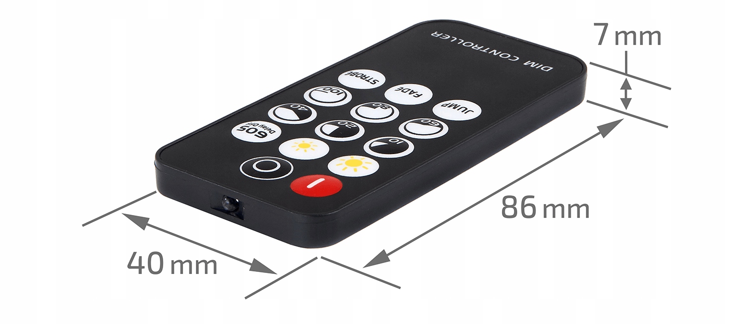 - Розміри: Розміри контролера: 13 x 22 x 52 [мм] Розміри пульта дистанційного керування: 40 x 86 x 7 [мм]