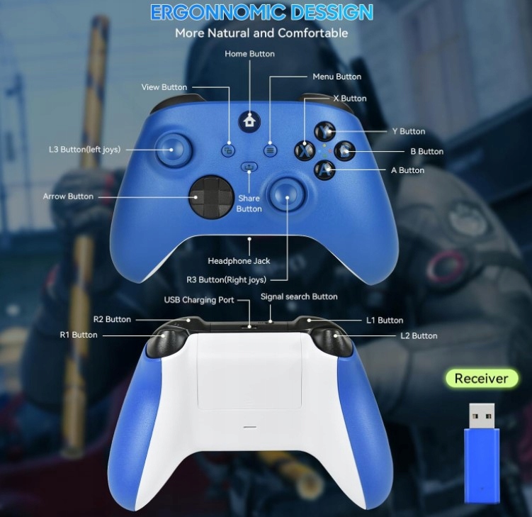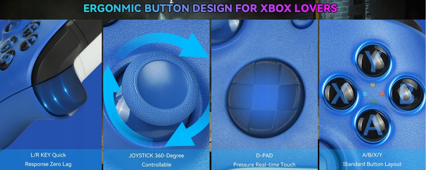 Геймпад оснащено чутливими та точними джойстиками та тригерами, які забезпечують точний контроль над діями в грі. Це особливо важливо в динамічних іграх, які вимагають швидких рефлексів і точного прицілювання.