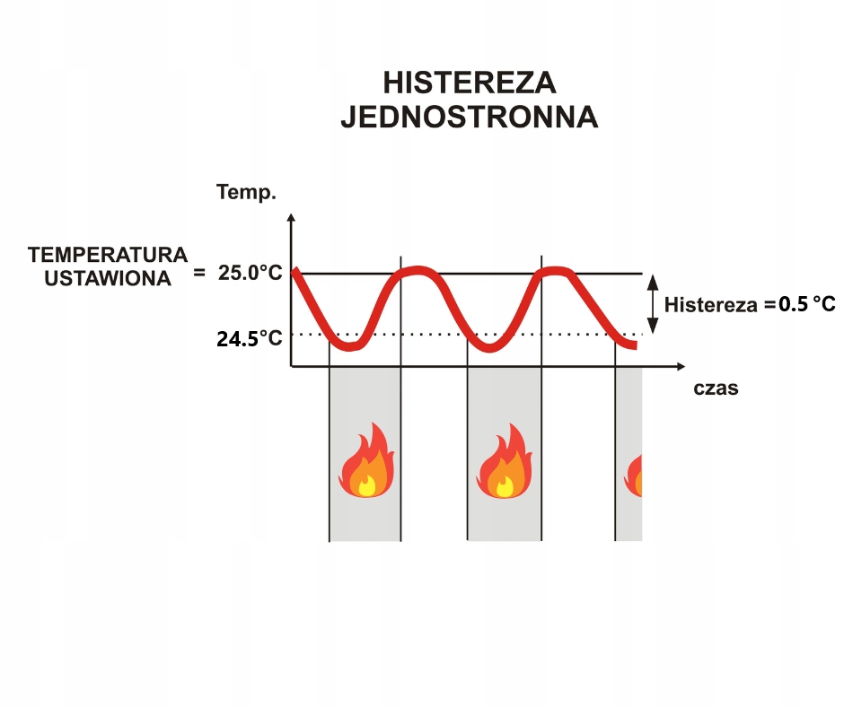 - Односторонній гістерезис, який можна налаштувати від 0,5°C до 10°C