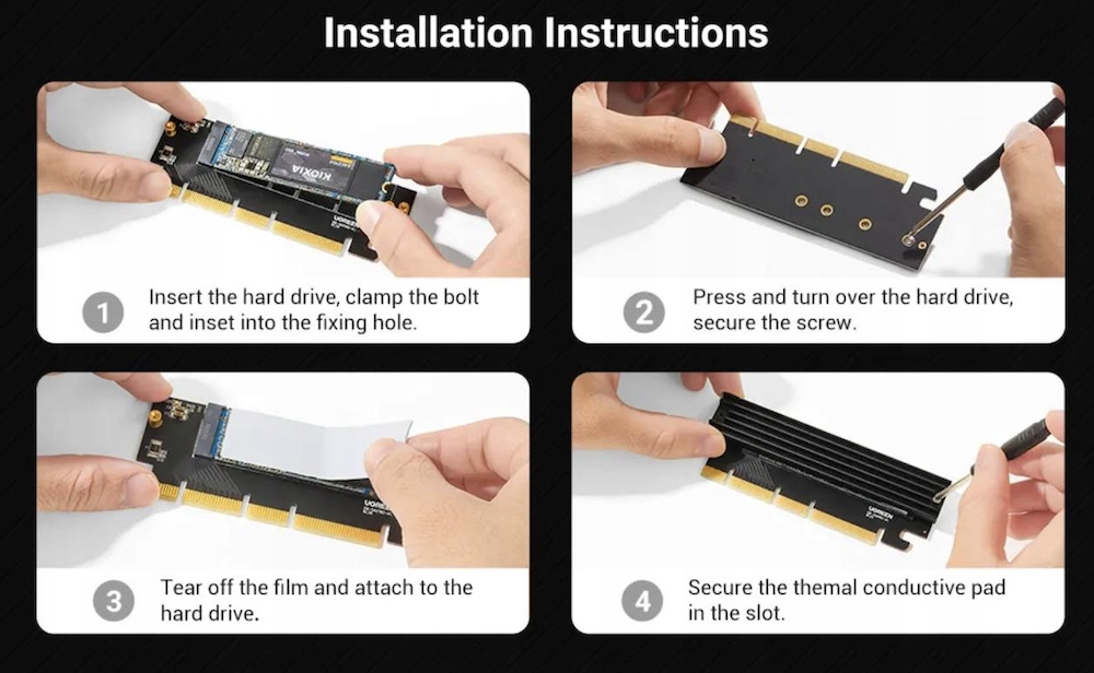 Контролер UGREEN M.2 NVME M-KEY SSD PCIE EXPRESS 4.0 PCIE X16 / X8 / X4