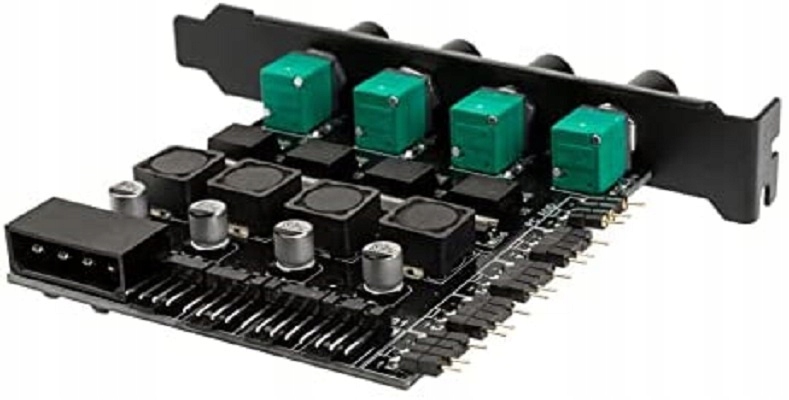 Контролер вентиляторів встановлений в один із PCI-слотів корпусу та оснащений чорною кришкою з анодованого алюмінію. Можна підключати як 3-контактні, так і 4-контактні вентилятори. Живлення подається через 4-контактний роз’єм Molex для прямого підключення до джерела живлення.
