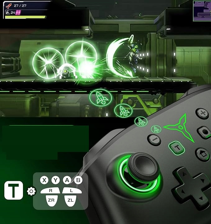 Опис продукту 2 комфорт під час тривалого часу відтворення. Бездротовий контролер забезпечує точний та реалістичний контроль, ідеально підходить для ігор, які використовують телевізійний режим або таблицю консолей Switch/Lite/OLED. Підтримує ігри з iOS MFI, Android HID та Windows 7/8/10 PC (Порада: Тільки USB -кабель для підключення до комп'ютера). Наступного разу просто натисніть кнопку "Домашня" на контролері комутатора, щоб знову прокинутися та підключити консоль. 9 кольорів світла, ви можете змінити кольори після різних ігор, щоб глибоко зануритися в гру