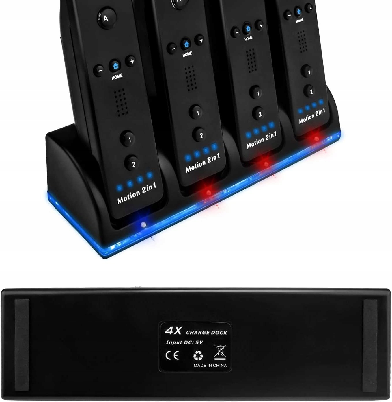 🎁🎁🎁 нагадування про зарядку - світлодіодне світло світить з основи док-станції, щоб показати стан зарядки акумулятора. Світло стане червоним, коли воно завантажується, після повного заряду він стане синім. За допомогою цього зарядного пристрою Wii 4 контролери можуть зарядитись одночасно.