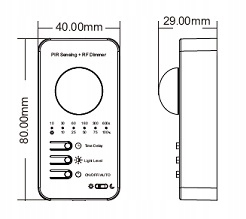 У режимі автоматичного виявлення світло вмикається, коли PIR-датчик виявляє рух людини, і вимикається з автоматичною затримкою, коли людина піде. У режимі автоматичного виявлення руху встановіть час затримки за допомогою кнопки затримки часу (10-600 секунд) і відрегулюйте яскравість світла кнопкою яскравості (10-100%). Режим автоматичного виявлення використовується на сходах, коридорах, гардеробах, спальнях та інших місцях, де необхідно ввімкнути світло за допомогою виявлення руху. Увімкнувши режим автоматичного визначення, рекомендується одночасно ввімкнути виявлення денного світла.
