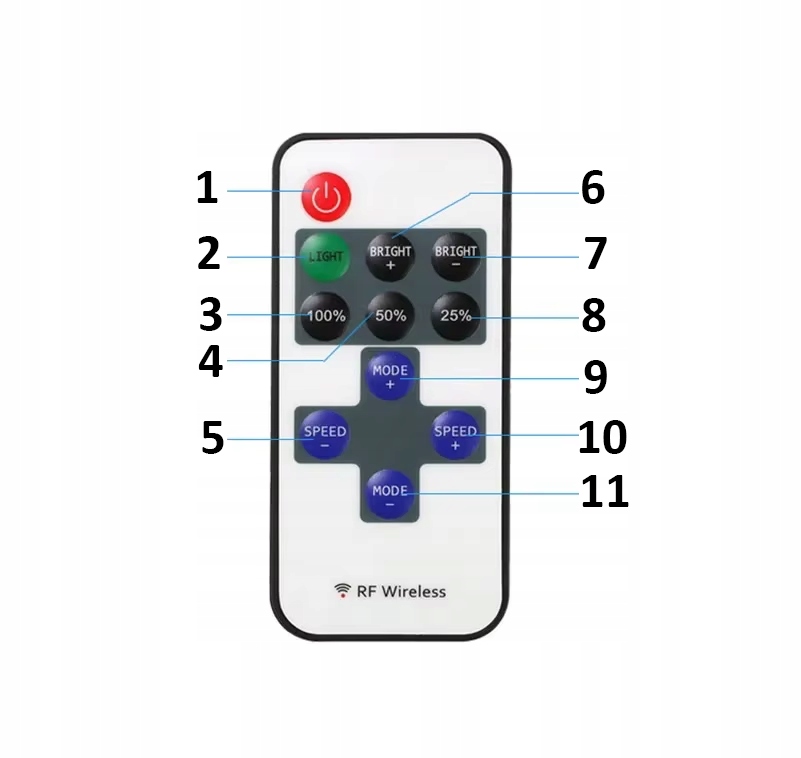 Бездротовий пульт дистанційного керування для управління світлодіодним освітленням - надзвичайно практичний та інтуїтивний інструмент, який дозволяє повністю керувати світлом у вашому середовищі. Завдяки 11 спеціалізованим кнопкам ви можете швидко адаптувати освітлення до своїх потреб. 4