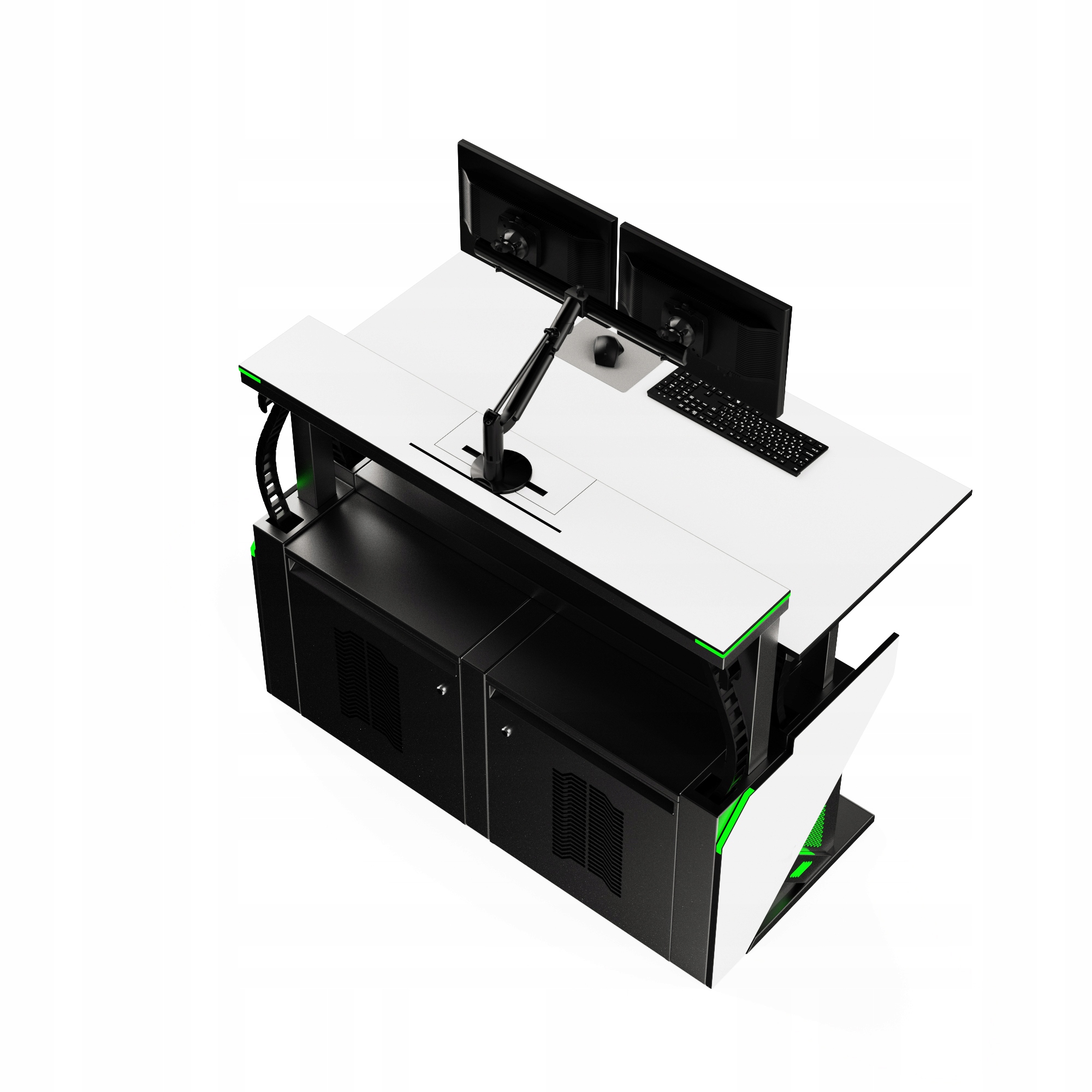 Наші консолі можуть бути оснащені будь-якими моніторами, комп'ютерами та іншими мультимедійними аксесуарами, а також світлодіодним освітленням, панелями керування розташуванням станцій/консолей та вдосконаленими системами керування, якими можна керувати з відстані. карти, кнопкові панелі та сенсорні панелі управління - вбудовані та налаштовані за попереднім узгодженням із Замовником.