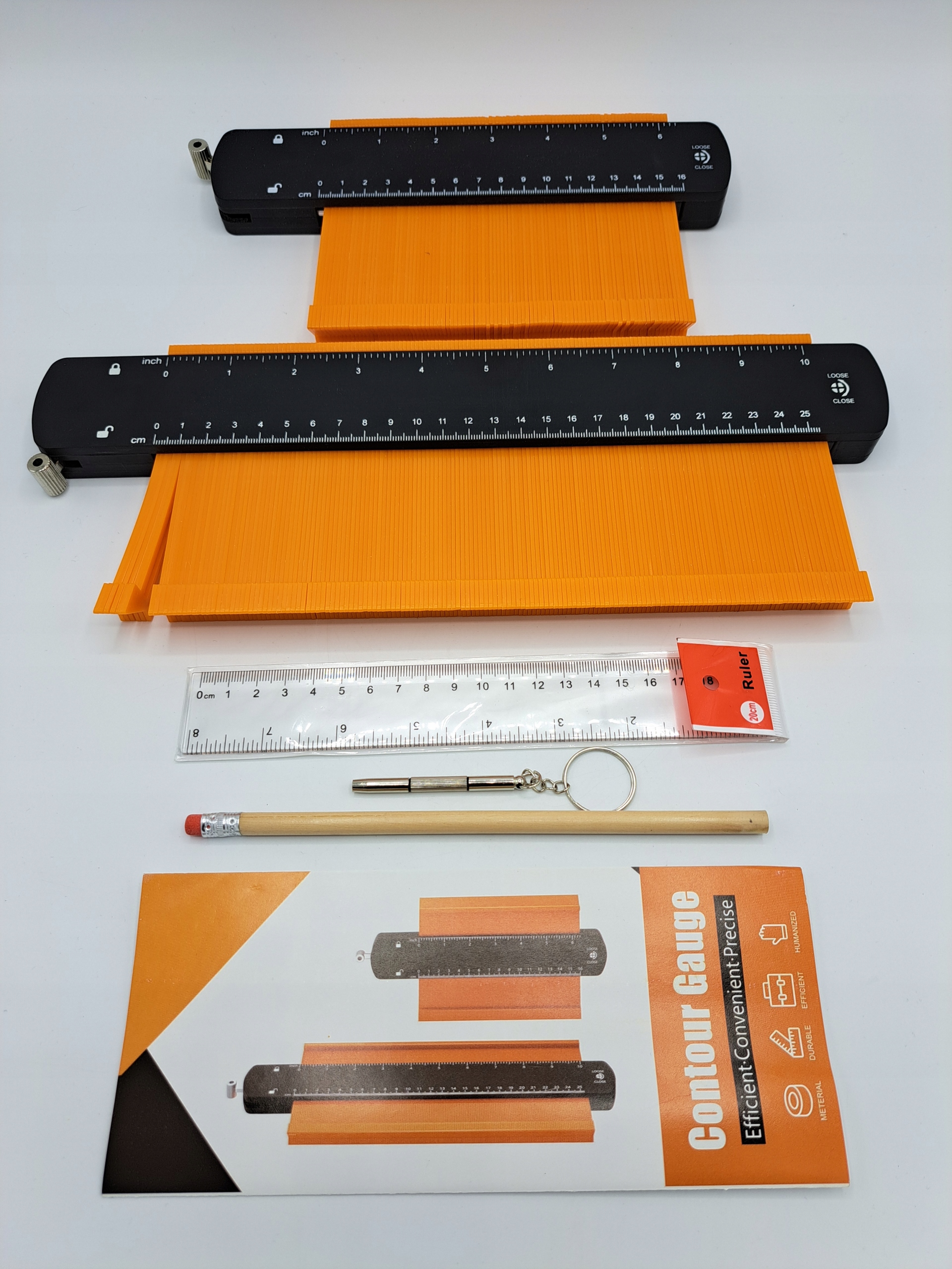 Глибина вимірювання становить 7 см:порівняно з іншими контурними вимірювальними приладами, наш контурний вимірювальний прилад має більша глибина вимірювання, тому ви можете легко і точно вимірювати та копіювати контури. Це хороший помічник для людей, які кладуть плитку, дублюють, ріжуть предмети та навіть займаються декоруванням дому та проектами своїми руками.