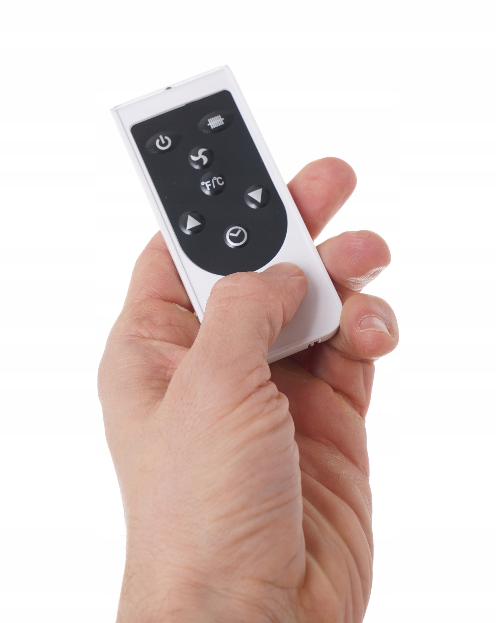 В набір входить пульт дистанційного керування - ми можемо дистанційно регулювати температуру, швидкість повітряного потоку або час, після якого обігрівач має вимкнутися!