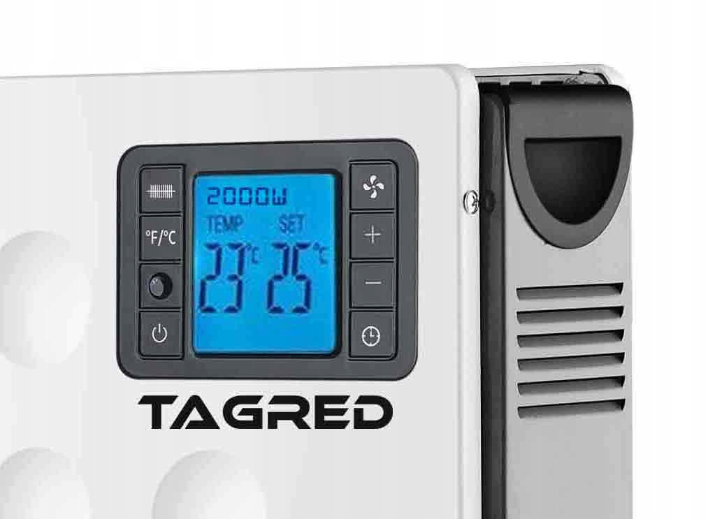 Конвекційний обігрівач TAGRED найвищого класу допоможе обігріти ванну чи дитячу кімнату в холодні дні. Тепле повітря, що піднімається від радіатора, швидко підвищить температуру навколишнього середовища. Велика кількість функціональних можливостей робить цю модель радіатора TAGRED однією з найкращих на ринку! Цифровий, вдосконалений ТАЙМЕР, дистанційне керування, висока потужність, сучасний дизайн задовольнять потреби найвимогливіших користувачів. Пристрій відповідає найвищим вимогам безпеки та має численні засоби захисту, включаючи регульований термостат, після досягнення обраної температури обігрівач автоматично вимикається.