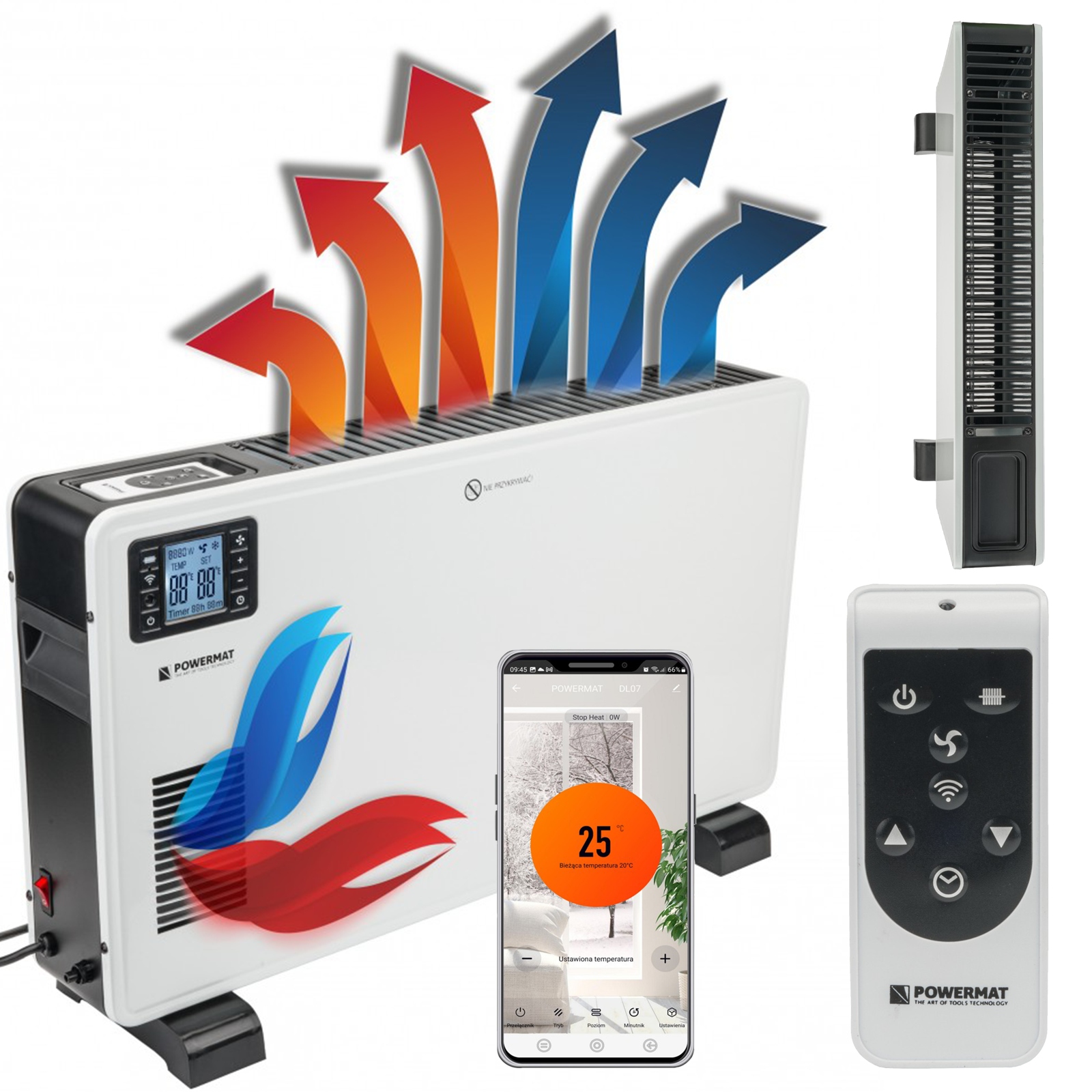 - Керування радіатором: Сенсорна панель, пульт дистанційного керування, WIFI - Tuya smart