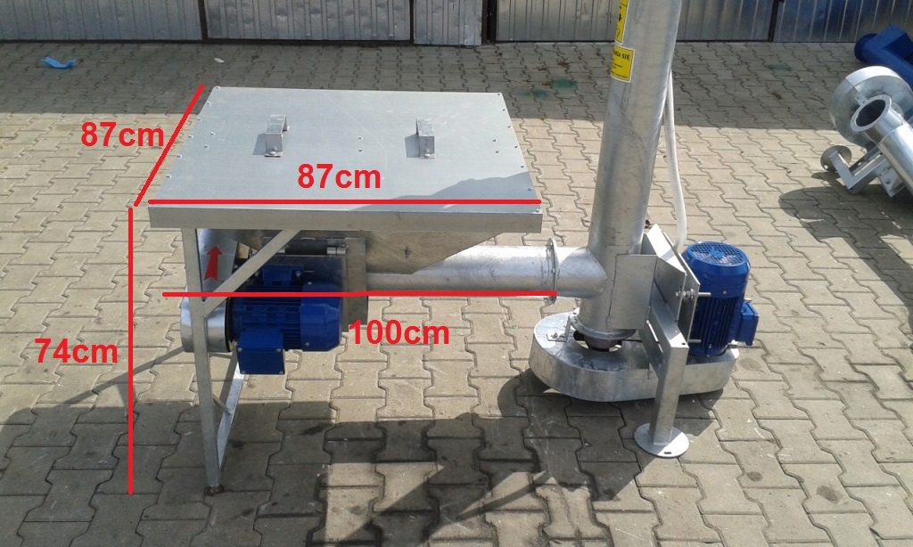 - Завантажувальний бункер розміром приблизно 0,87x0,87 м і висотою від землі 0,74 м з додатковим двигуном, що підвищує ефективність