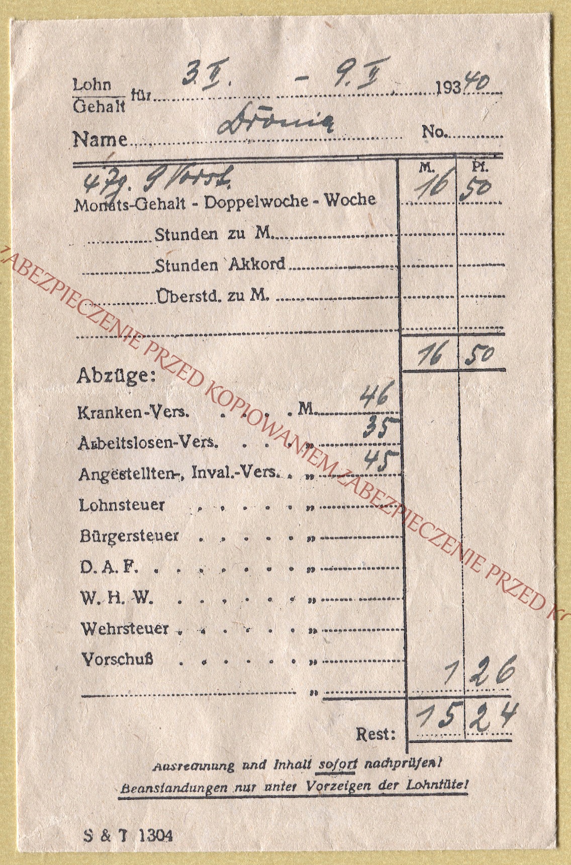 КОНВЕРТ ANK III REICH ДЛЯ ОПЛАТИ WHW DAF 1940