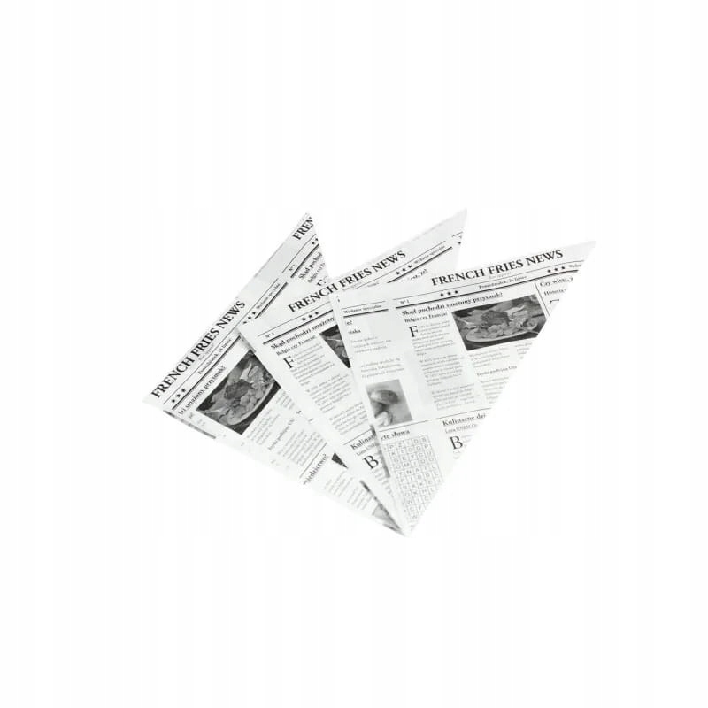 Зручне паперове пакування у формі конуса. Ідеально підходить для подачі картоплі фрі та інших подібних закусок. Вони добре працюватимуть у будь-якому місці, де подають картоплю фрі, навіть у найменших кабінках і на стендах під час заходів на відкритому повітрі.