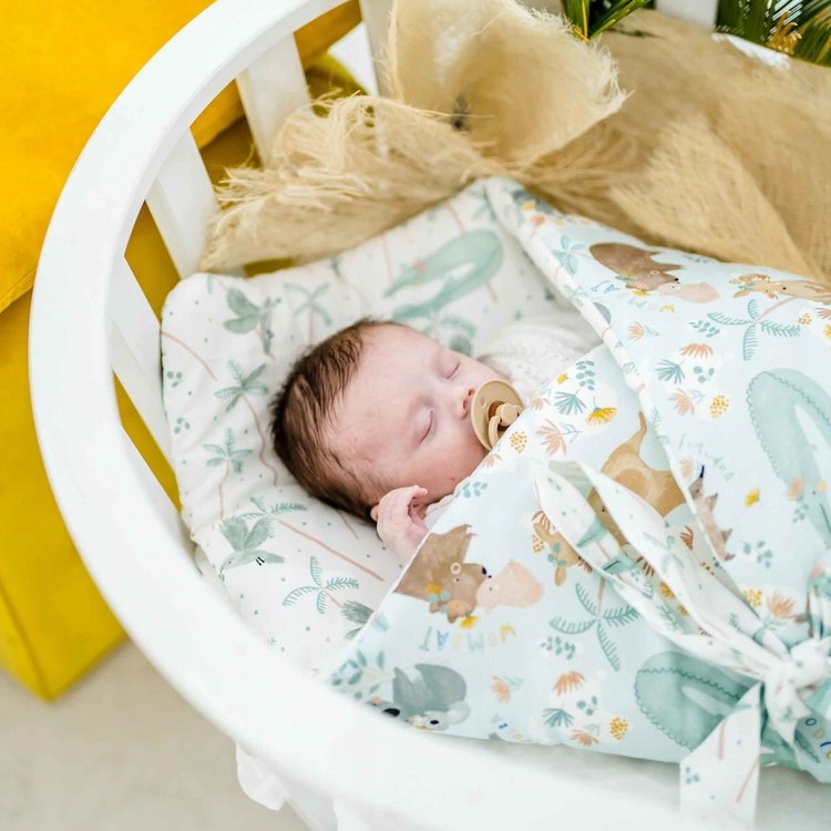 Класичне та чарівне дитяче сповивання, яке буде сповивати вашу дитину з дня народження. Завдяки сповиванню малюк відчуває себе так само безпечно, як в утробі матері, заспокоює малюка і йому легше засинає. Виготовлені з бавовни найвищої якості, наповнені двома шарами наповнювача. Перший шар - це стандартний конусний наповнювач, який досить жорсткий, щоб міцніше і безпечніше утримувати дитину з перших хвилин. Другий шар набагато тонший і пухнастий, завдяки чому малюкові лежати в ньому комфортніше. Пеленання також має вшиті стрічки, які дозволяють регулювати його розмір.