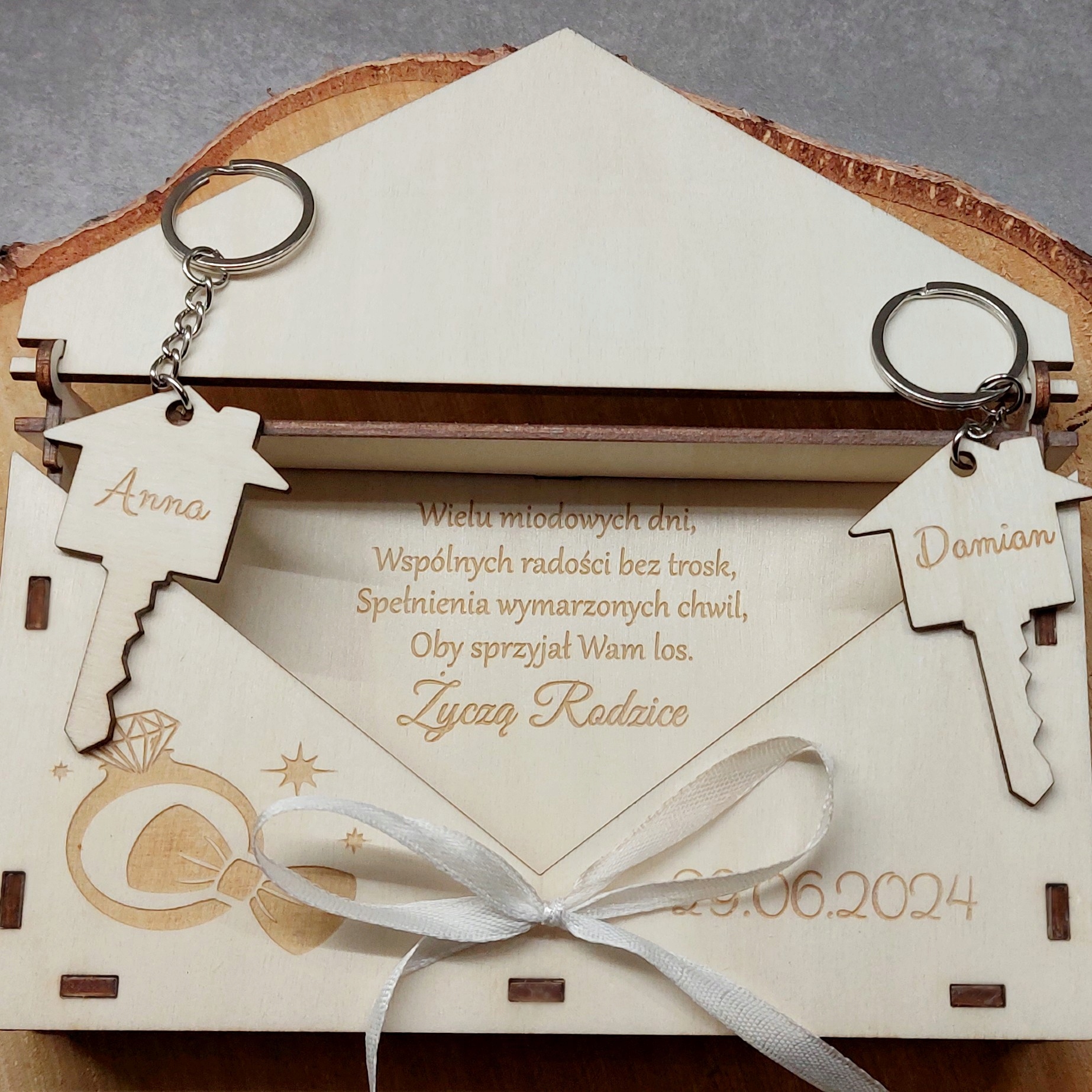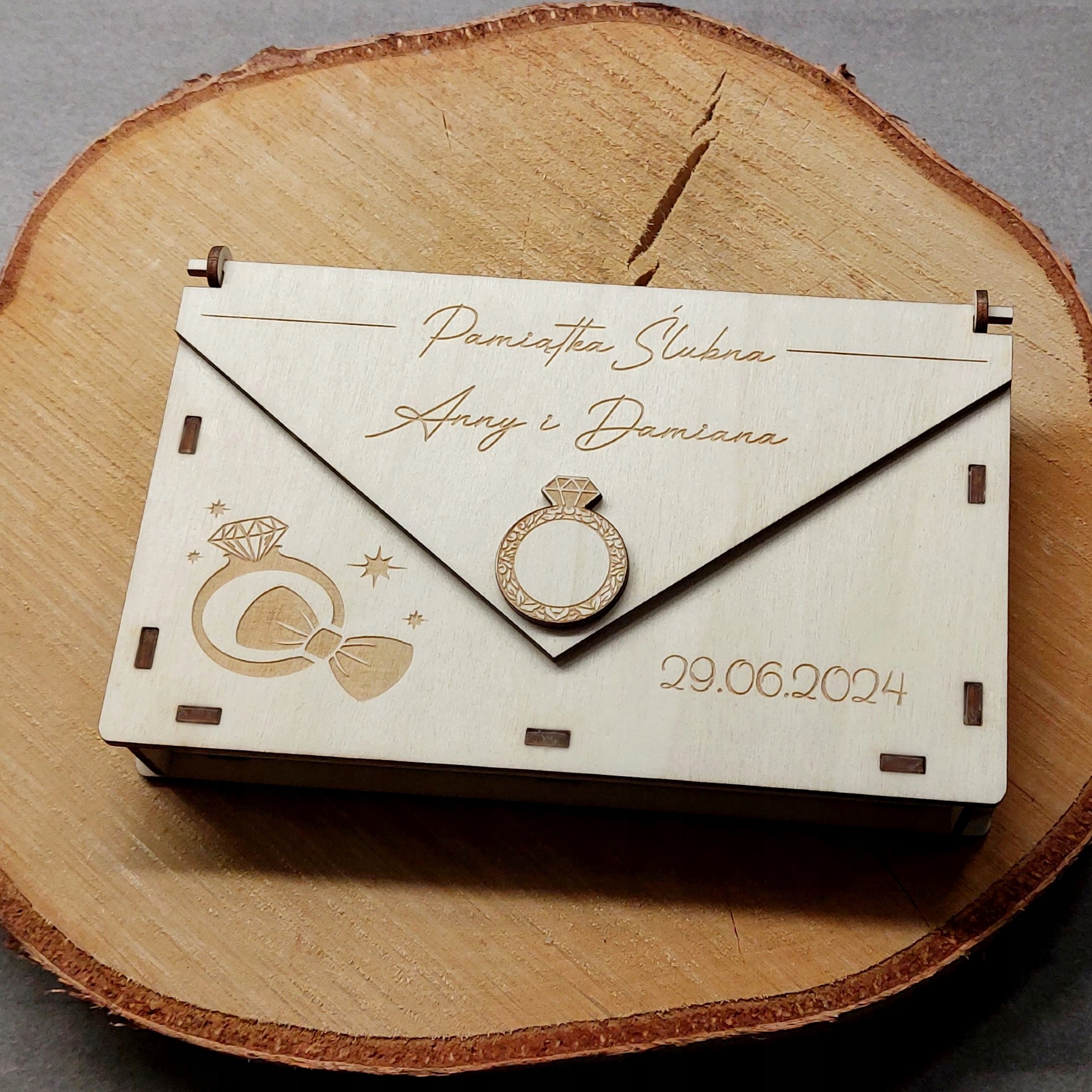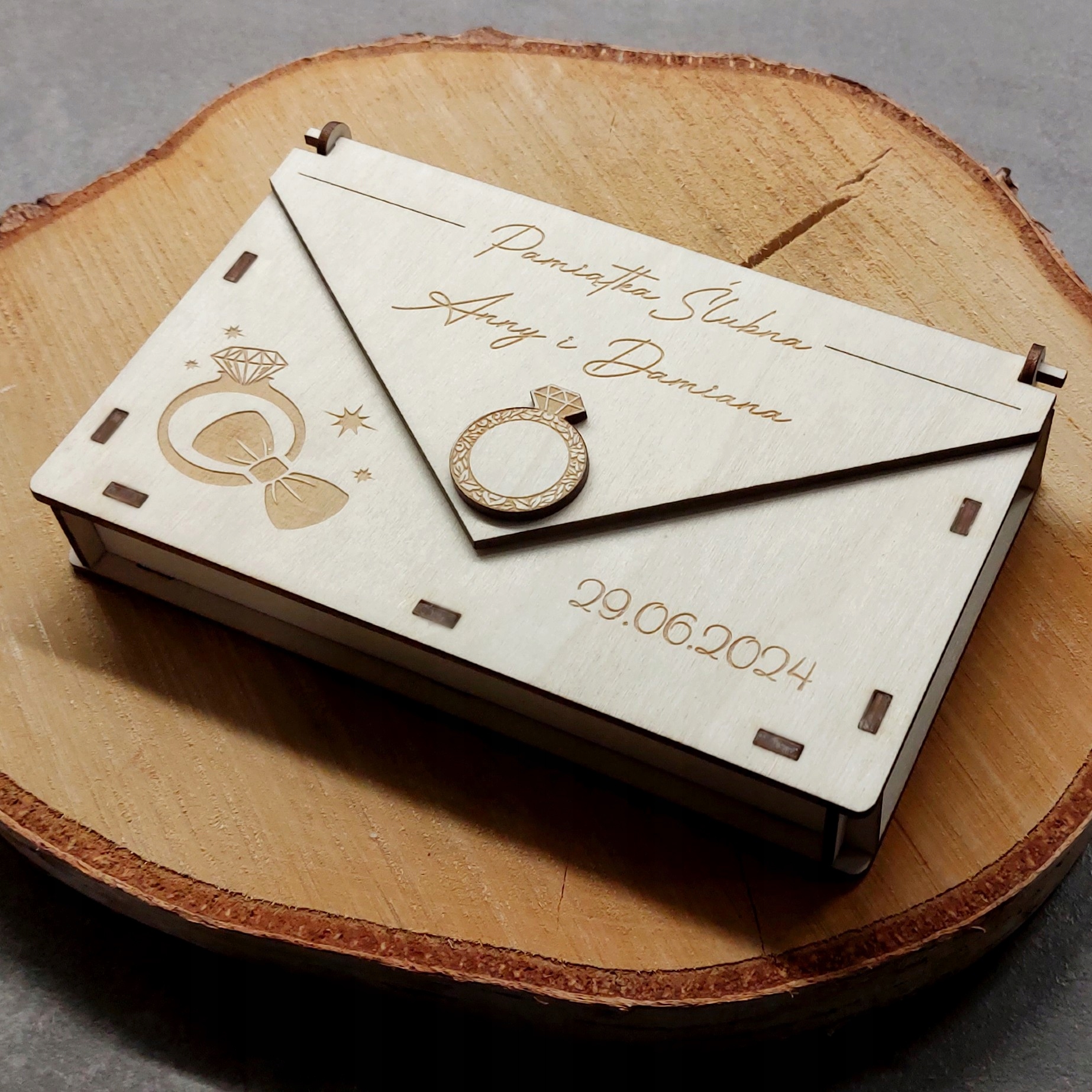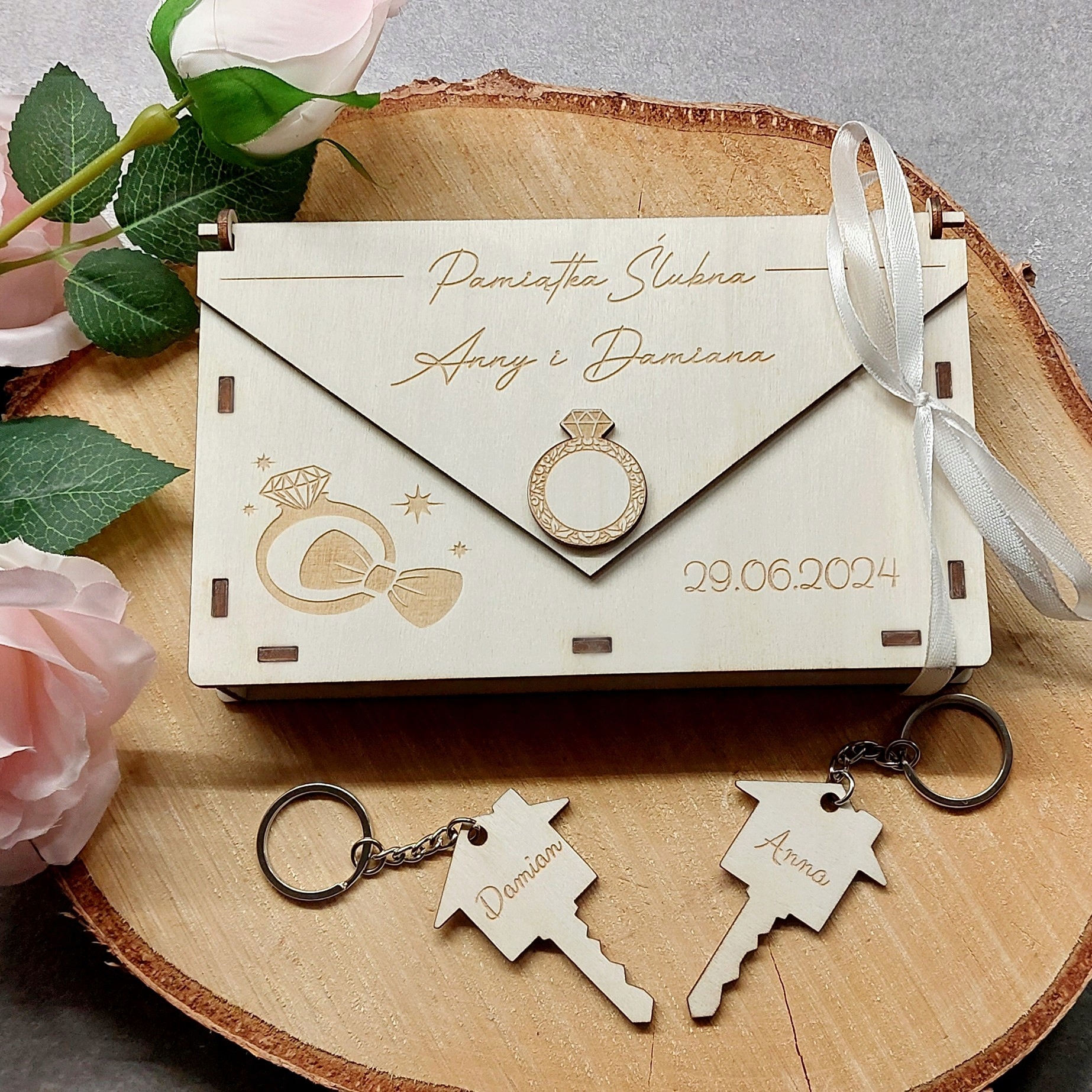 ДЕРЕВ'ЯНИЙ КОНВЕРТ - СКРИНЧКА - ВЕСІЛЬНІ СУВЕНІРИ З ПЕРСОНАЛІЗОВАНИМИ ПОБАЖАННЯМИ + 2 брелока з іменами!