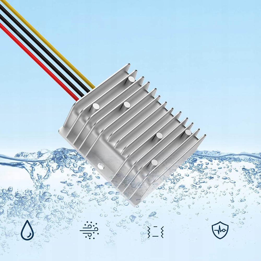 У перетворювачі працюють проблеми -вільні в найскладніших умовах, впливу важких факторів навколишнього середовища. Завдяки повній ізоляції в класі жорсткості IP68, інвертор може працювати в умовах високого запилення та вологи. Широкий діапазон робочих температур гарантує правильну роботу з високим сонячним світлом, поганою вентиляцією, у тісних місцях, в моторних відсіках. Діапазон вхідної напруги для правильної стабільної роботи становить 11-16 В.