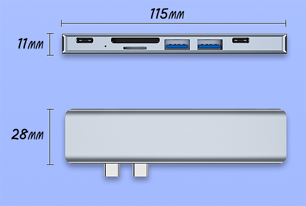 Дозволяє розширити Macbook за допомогою роз’єму USB-C додатковим пристроєм для читання карток USB / HDMI / USBC / SD + TF