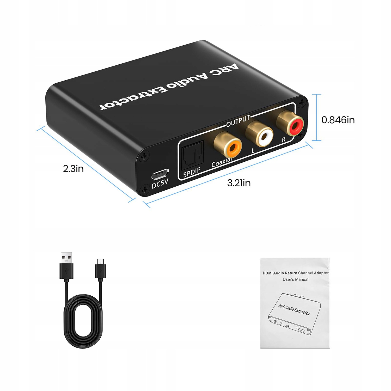 1. ARC Audio Extractor --- Цей аудіоекстрактор із коаксіальним входом і 3,5 мм (0,14 дюйма) SPDIF L/R RCA виходом підходить для телевізорів. (ПРИМІТКА: підтримуються лише телевізори з функцією ARC).