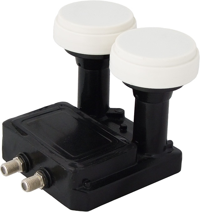 Подвійний моноблок INVERTO BLACK Pro конвертер. Можливість підключення двох незалежно працюючих тюнерів. Моноблок-двійник забезпечує супутниковий сигнал для двох тюнерів з однією головкою (тобто ви дивитеся два незалежних супутника на кожному тюнері) або одного тюнера з двома головками PVR. Головний конвертер (у центрі) має бути налаштований на прийом сигналу HOTBIRD. Після налаштування антени на прийом сигналу від HOTBIRD сигнал із супутника ASTRA стане доступним автоматично. Щоб переключити конвертер на прийом із супутника ASTRA, необхідний сигнал DiSEqC, який генерується тюнером. Рівень шуму 0,2 дБ.