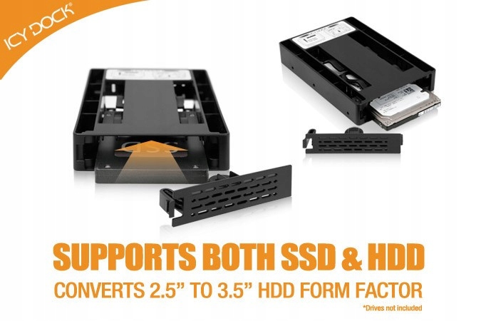 EZConvert Lite MB882SP-1S-3B перетворює будь-який стандарт Жорсткий диск 2,5" SATA/SAS точно у відсік для жорсткого диска 3,5". Також підходить для 2,5-дюймових жорстких дисків SAS/SSD, які забезпечують єдиний канал SAS із можливостями системи SAS.