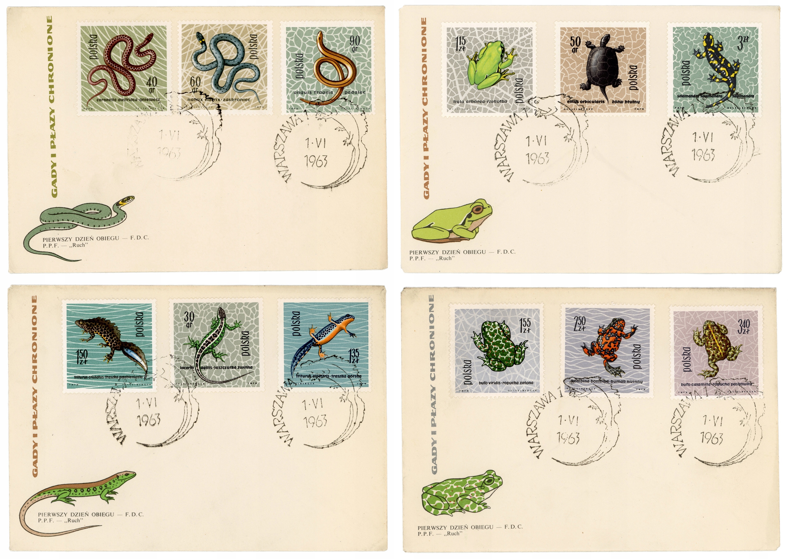 Конверти FDC Fi. 1245-1256 Рептилії та амфібії