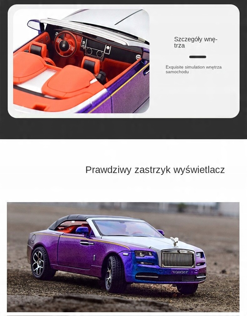 Просматривая «Кабриолетная модель Rolls-Royce по шкале 1:24», вы можете быть уверены, что данный товар из каталога «Весы 1:26 до 1: 42» будет доставлен из Польши и проверен на целостность. В цене товара, указанной на сайте, учтена доставка из Польши. Внимание!!! Товары для Евросоюза, согласно законодательству стран Евросоюза, могут отличаться упаковкой или наполнением.