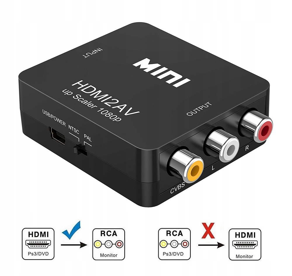 Konwerter Sygnału z HDMI do AV FULL HD Konwerter Wideo i Audio PAL/NTSC
