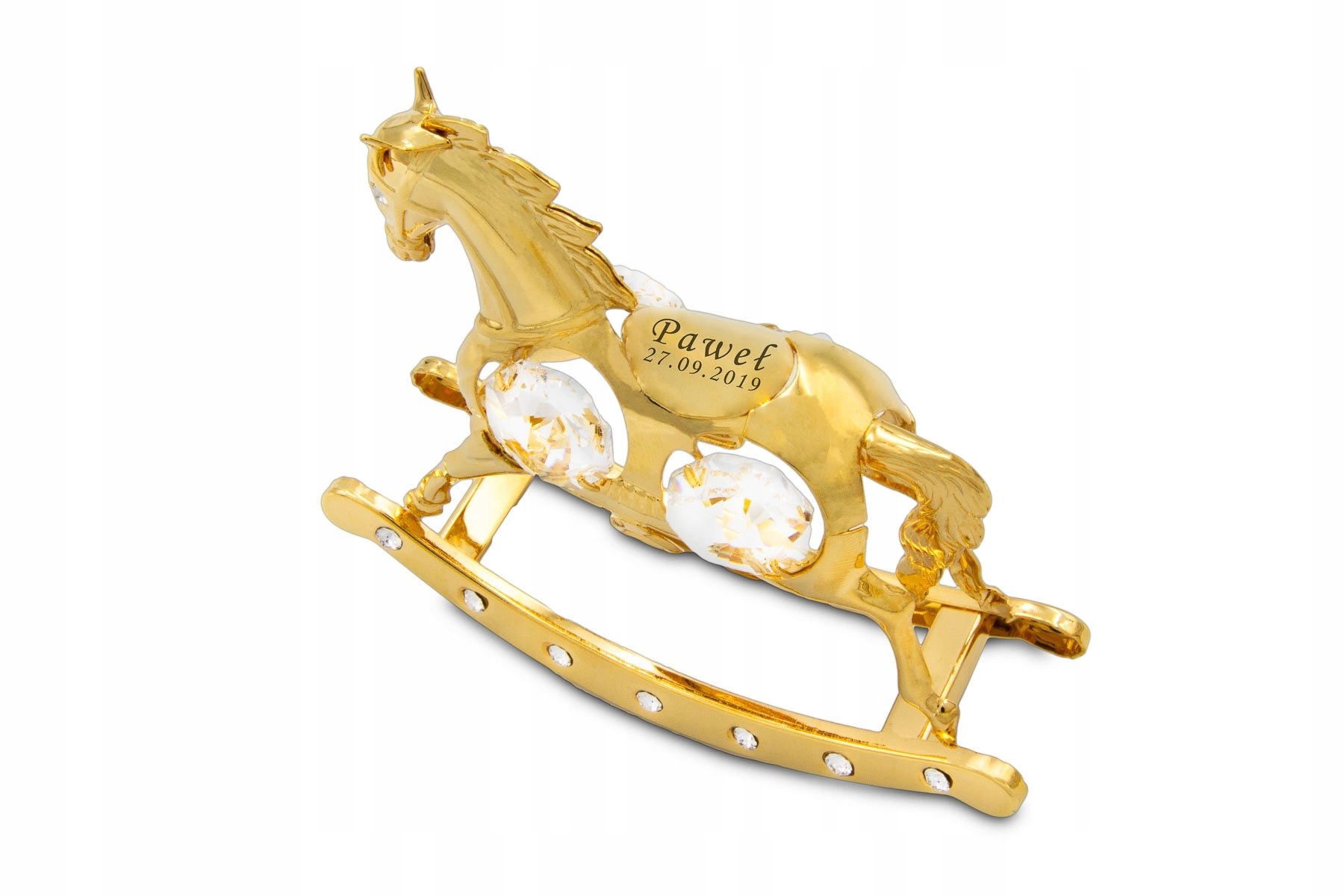 Коня-гойдалка з кристалами, сувенір на хрещення однорічної дитини з ГРАВІЮВАННЯМ (арт. № 458)