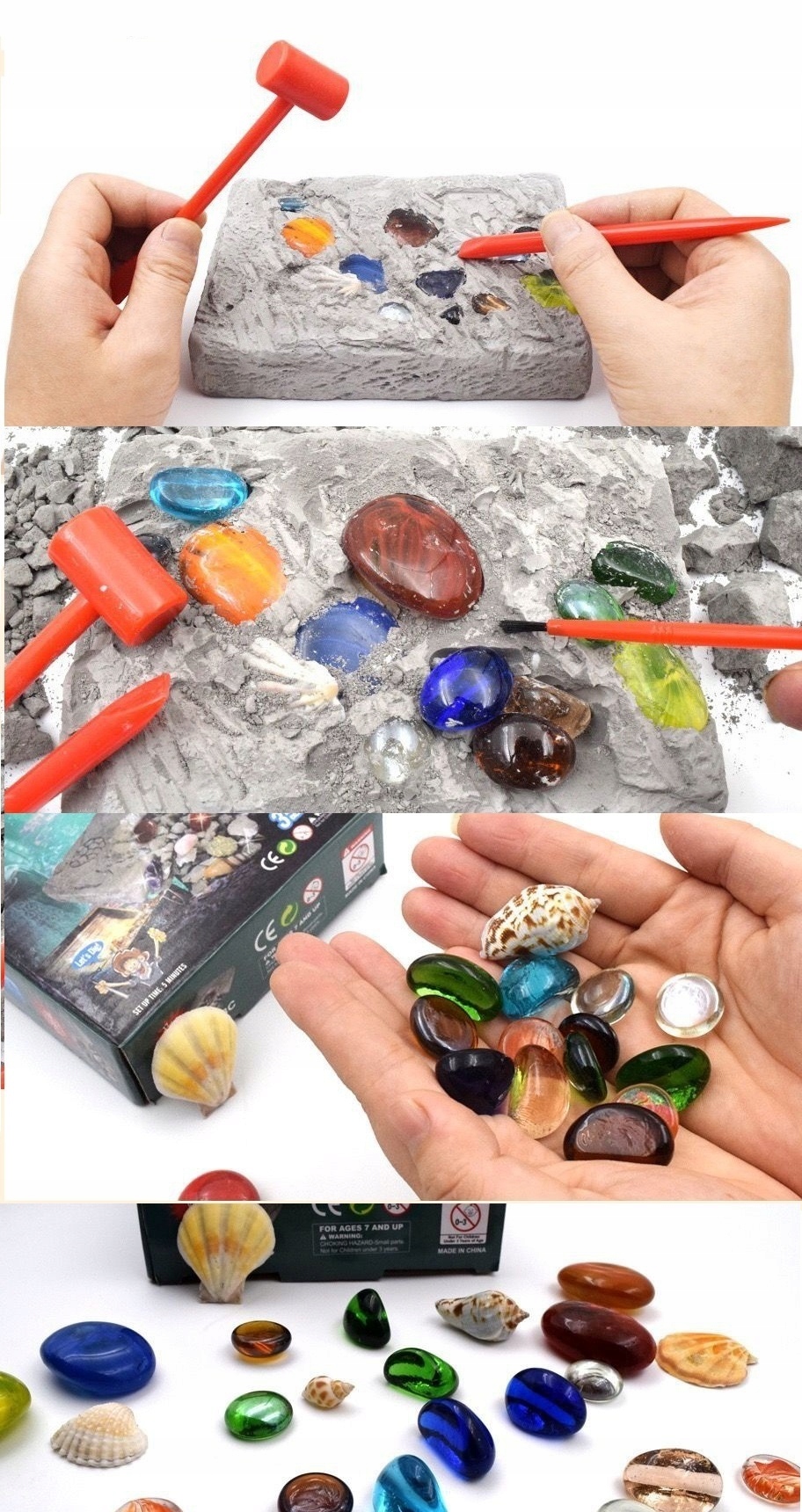 ✅ гіпсовий камінь✅ долото молоток з гострим кінцем ✅ віник для чищення сюрпризи (мушлі, камінчики, діаманти)