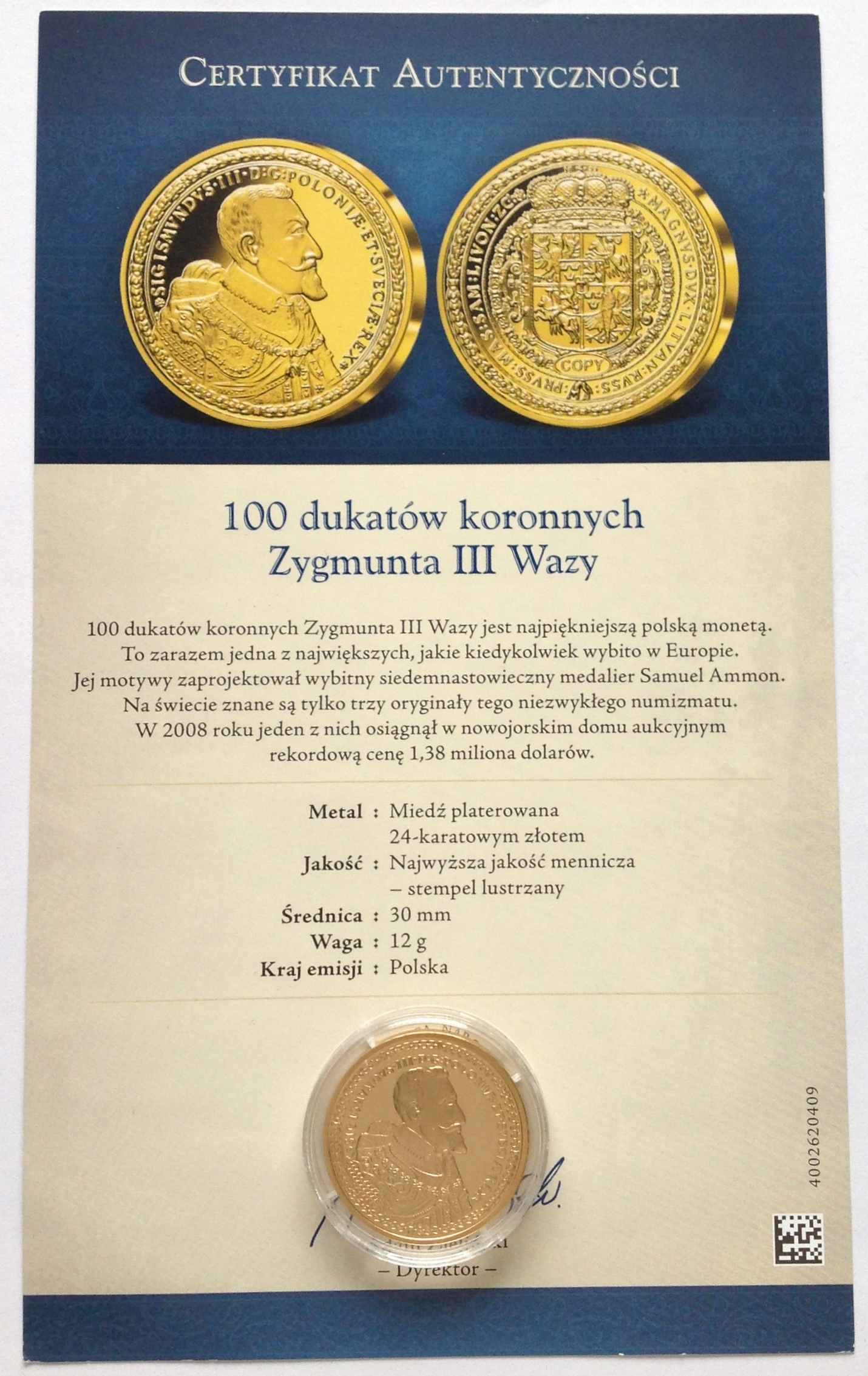 Копія 100 дукатів 1621 Сигізмунд III Ваза