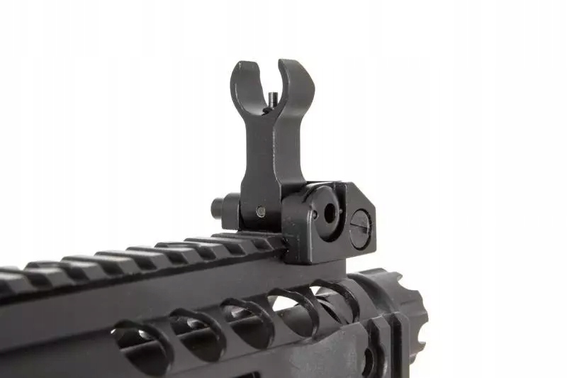 Лицьова частина репліки виконана в стандартній системі кріплення MLOK - це дозволяє регулювати розташування рейок і аксесуарів на репліці відповідно до вподобань користувача. На рейці є кріпильні гнізда для підвіски QD.