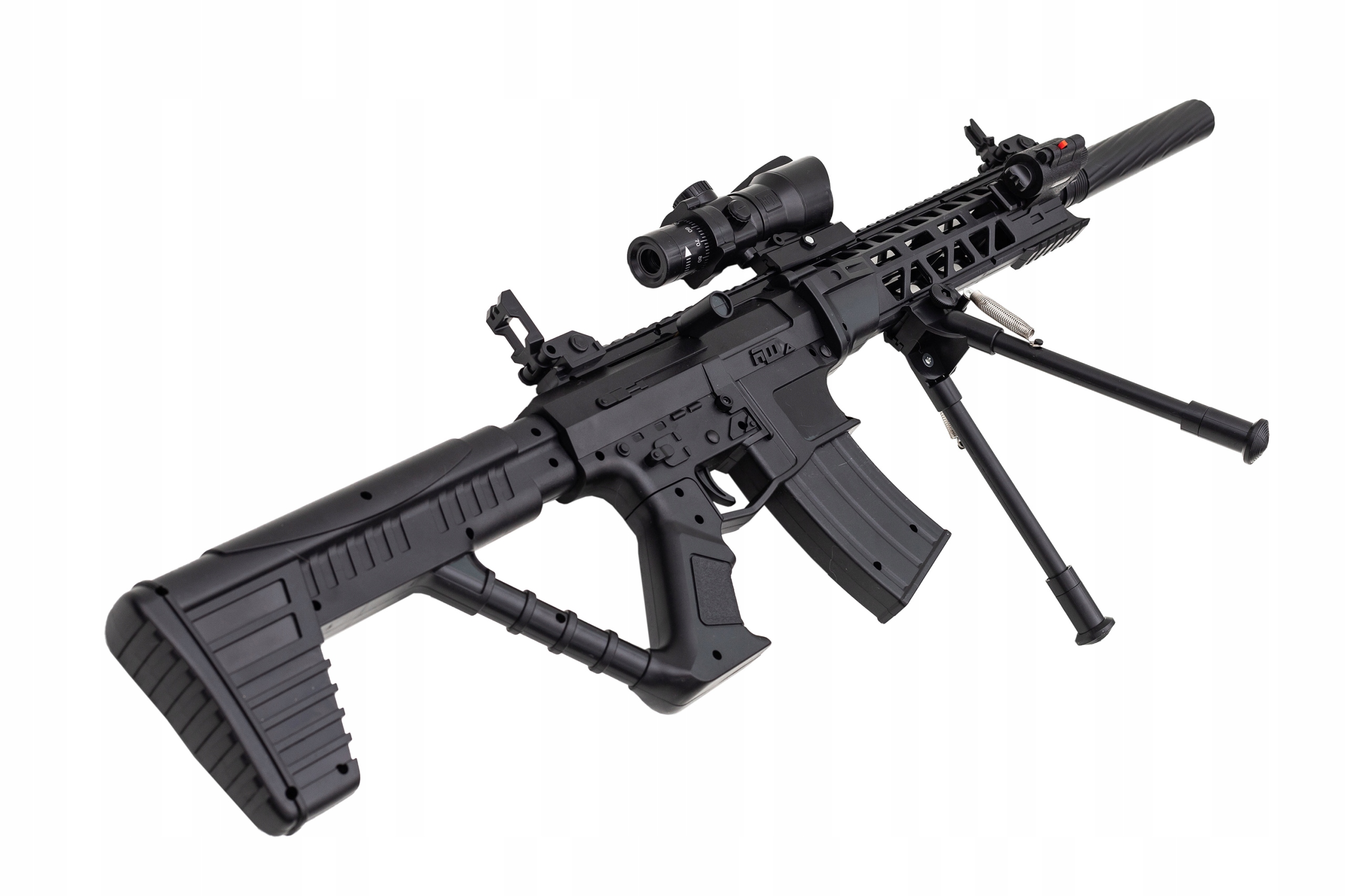 Репліка снайперської гвинтівки з пластиковими кульками, схожа на радянську гвинтівку SWD "DRAGUNOV". Гвинтівка велика, виготовлена переважно здуже якісного полімеруз пружинною системою. Його зовнішній вигляд нагадує культову снайперську зброю з комп’ютерних ігор, таких як Counter Strike. Репліка чорного кольору. Має пружинну систему, засновану на перезаряджанні за допомогою важеля, розташованого збоку рушниці. Репліка поставляється з муляжем прицілу, глушником і сошкою, тобто обладнанням, схожим на справжню снайперську гвинтівку. Передня частина гвинтівки оснащена 4 рейками RIS, що дає можливість опціонально встановлювати додаткове обладнання.