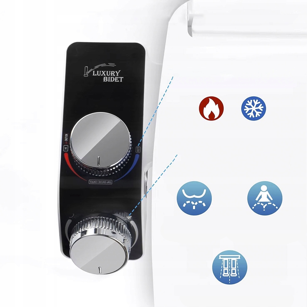 ✅【Дизайн гарячої та холодної води】 Наша насадка для унітазу має два шланги: 2-метровий поліуретановий шланг для гарячої води та Сталевий шланг в оплітці 0,7 метра для холодної води. Ручка регулювання температури дозволяє вибрати гарячу або холодну воду, що робить біде придатним для будь-якої пори року та забезпечує комфорт.