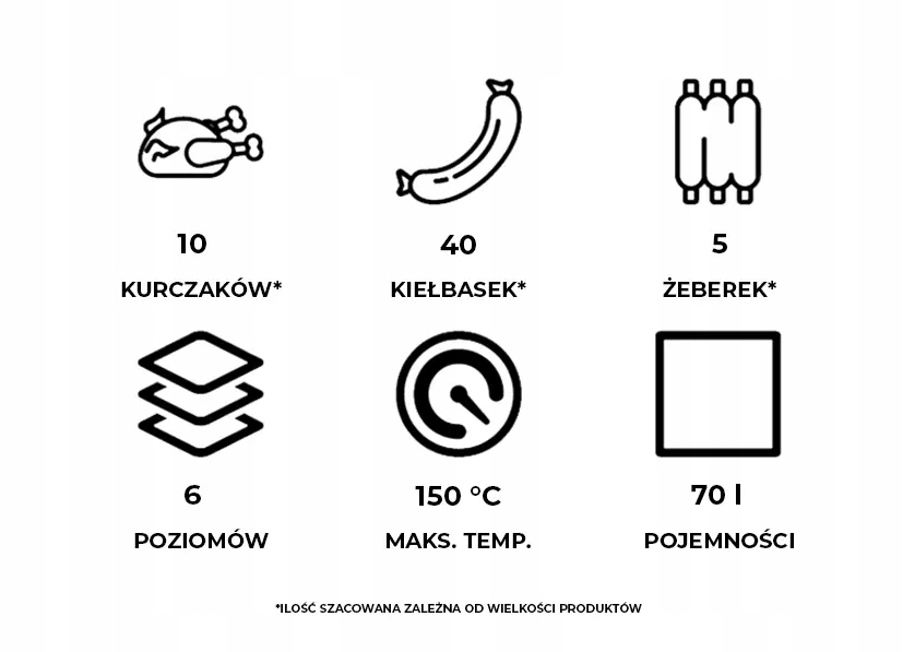 Увага! Холодне копчення можливе після встановлення насадки ZWS-01 (продається окремо).