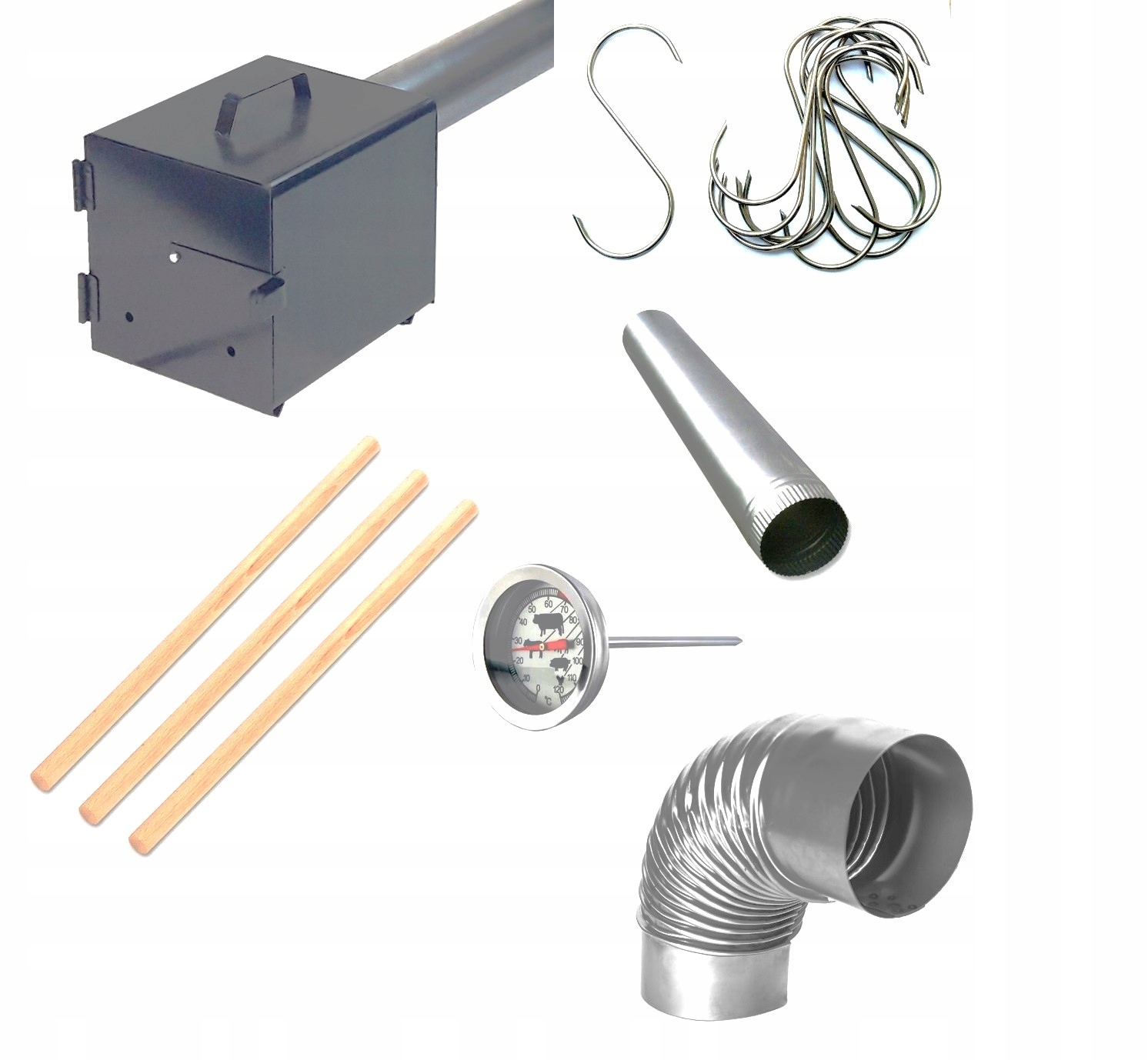 - Коптильня відправляється повністю зібраний. Усі елементи з’єднані гвинтами між собою