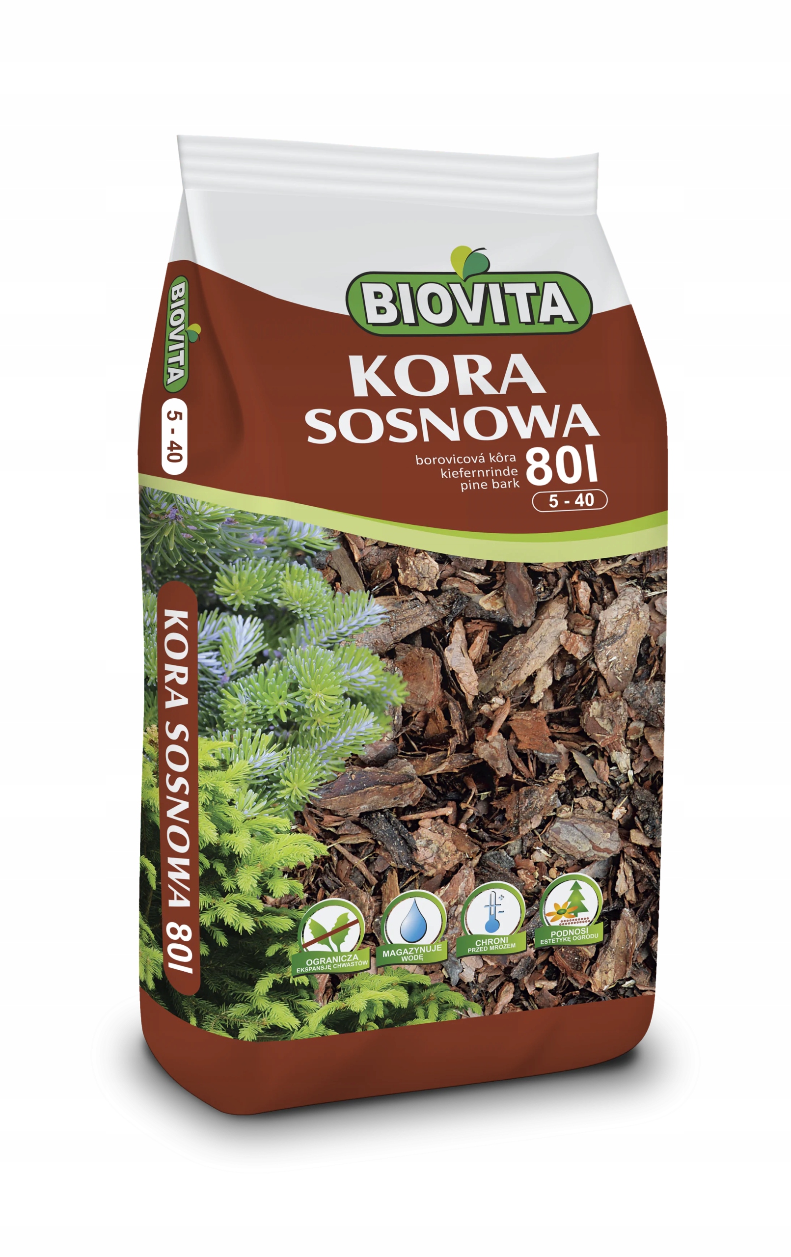 Кора сосни BIOVITA, додана до ґрунтового субстрату, покращує його повітряні та поживні властивості, прискорює утворення гумусу, сприяючи росту рослин. Це дуже важливо, особливо на територіях із пошкодженим ґрунтом (наприклад, навколо новозбудованих будівель, меліорованих територій).