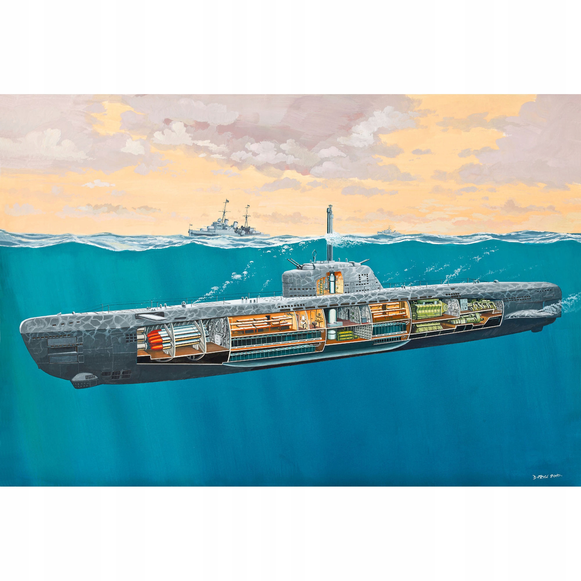 На початку 1945 року Німеччина мала найсучасніший підводний човен у світі на той час - тип XXI. Завдяки численним технічним інноваціям він міг подорожувати під водою без обмежень, оскільки дизельні двигуни висмоктують необхідне свіже повітря через спеціальний пристрій. Корабель забезпечив підводну подорож із сенсаційною швидкістю 17 вузлів. Інші нововведення включали тихі електродвигуни, дуже чутливі пристрої відстеження та 20 мм протипартійну ділянку. Модель, яка також є перехресним розрізом, забезпечує доступ до відтвореного інтер'єру цього незвичайного зневоднення! Багато кімнат були відтворені з надзвичайними деталями, включаючи дизельні та електричні двигуни. Інсайт у командному центрі та вітальні екіпажу дає уявлення про життя під водою. Наклейка містить деталі інтер’єру та позначення підрозділу U2540, який вступив у службу 24 лютого 1945 р. Після короткого тренувального круїзу, U2540 був заточений екіпажем у Фленсбурзькому Форді 4 травня 1945 р. Сьогодні U2540 можна відвідати як музейний човен. Знімна ліва зовнішня стінка фюзеляжу забезпечує вид на внутрішню кількість численних детальних житлових кімнат. Детальні екіпажі командного центру Tower з внутрішнім дизайном детальні кімнати для дизельних та електричних кімнат для батарей/батарей, що рухають рухомі елементи, що контролюють глибину та обертові кадри. Вежа з антенами з антенами з антенами. Автентична наклейка на U2540 з деталями інтер'єру. Набір включає інструкції з будівництва та наклейка