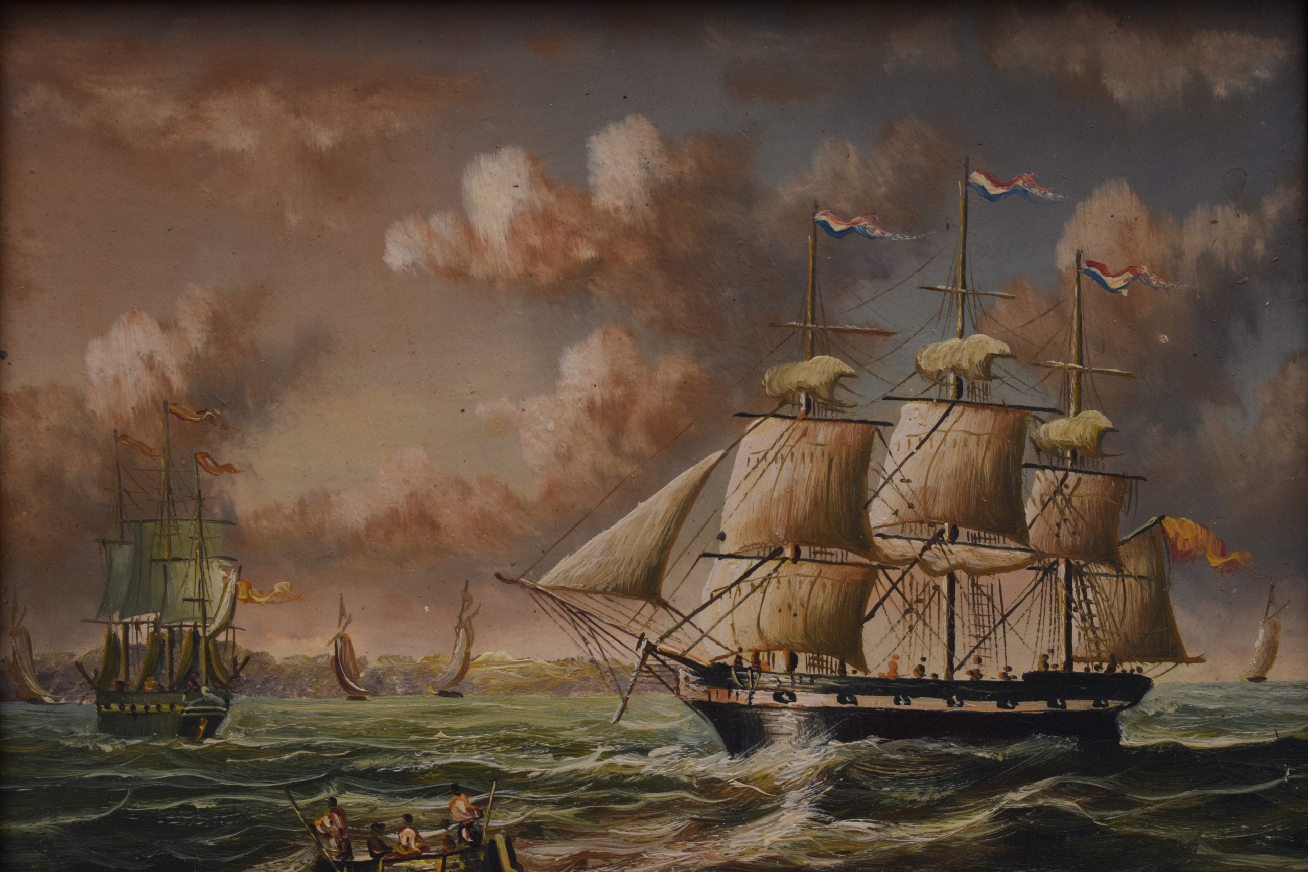 Корабель на морі - Вітрильник - Морський - Картина маслом - Золота рамка