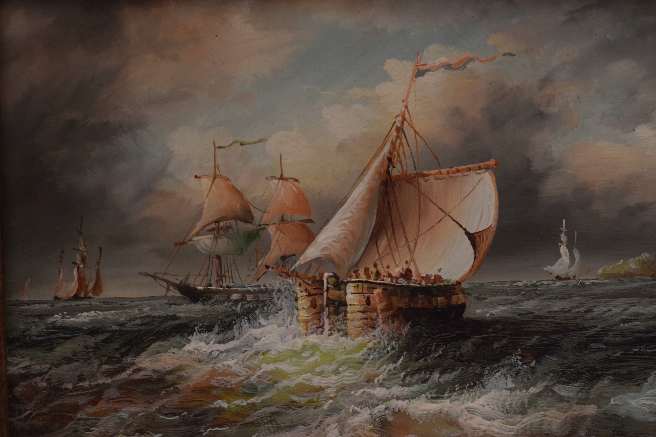 Корабель на морі - Вітрильник - Морський - Картина маслом - Золота рамка
