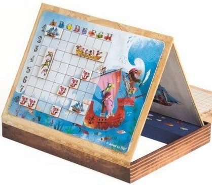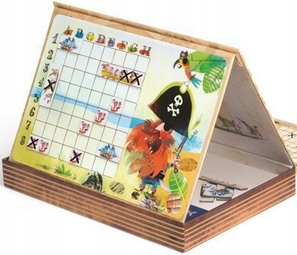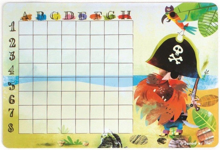 Замість паперу та олівця Janod пропонує інноваційне рішення - гарно проілюстровані кораблі у формі магнітів, які розміщені на двох магнітних дошках із піратським мотивом.