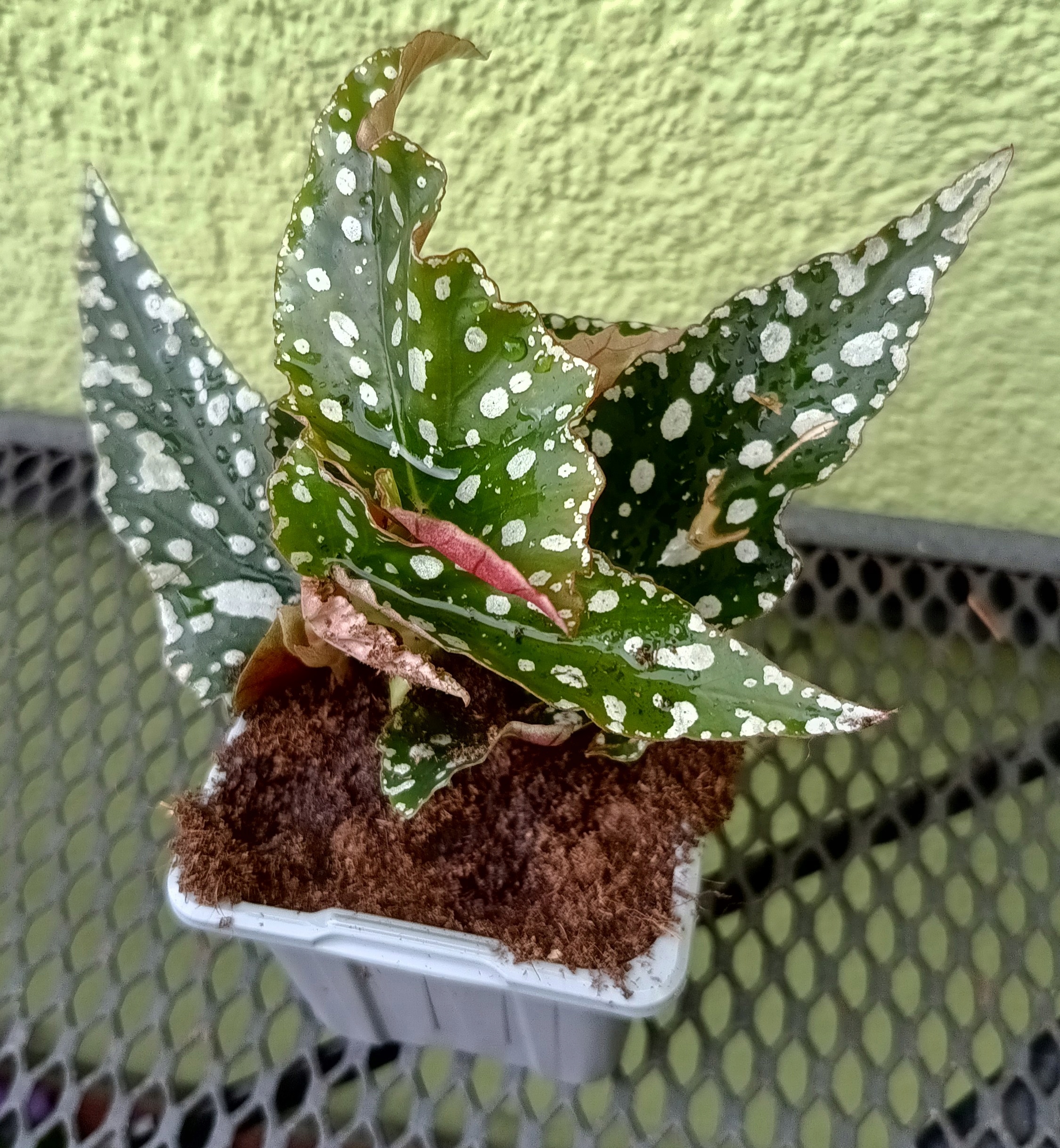 Бегонія коралова, бегонія плямиста - вид рослин родини бегонієвих. Ареал охоплює південь Бразилії та провінцію Місьйонес в Аргентині. Сорт «Люцерна» широко культивується і вважається одним з найбільш стійких і в той же час декоративних як листя, так і квіток. Легко вирощувати. У Польщі її вирощують як декоративну горшкову рослину в будинках і квартирах. Відноситься до групи бегоній з декоративним листям і квітками. Це багаторічна рослина, її можна вирощувати багато років, але при вирощуванні в квартирі любить повітряний легкий ґрунт. Найкраще підійде звичайна торф’яна земля. Для цього потрібна мінімальна температура 13 °C взимку і 15 °C влітку. Зберігати його потрібно в добре освітленому місці, але не на прямому сонці. Добре росте в маленькому горщику, але якщо йому стає тісно, навесні рослину слід пересадити в горщик на розмір більше. Поливати слід водою без кальцію, не змочуючи листя; влітку двічі на тиждень, взимку кожні 7–10 днів. З квітня по вересень слід підгодовувати рослину розведеним багатокомпонентним добривом. При надмірній сухості повітря листя необхідно окропити. Якщо пагони надмірно витягуються і не розгалужуються, слід обрізати верхівки росту – тоді рослина буде більше гілкуватися. Не просвічуйте листя.