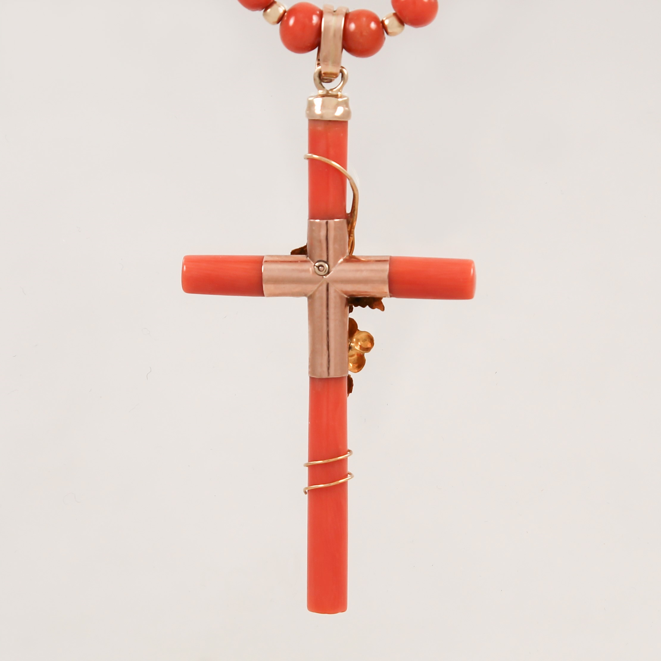 Коралове золоте намисто з хрестом