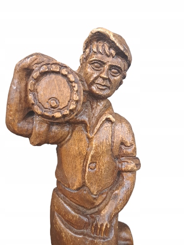 Дерев’яна скульптура із зображенням корчма, який несе бочку.