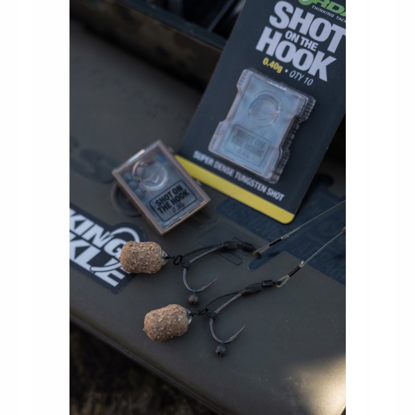 Shot on the Hook доступний у трьох розмірах: 0,30 г, 0,40 г і 0,50 г і поставляється в зручній коробці для зберігання з ковзною кришкою, щоб безпечно зберігати його у вашій коробці-лідері, по десять штук в пачці.