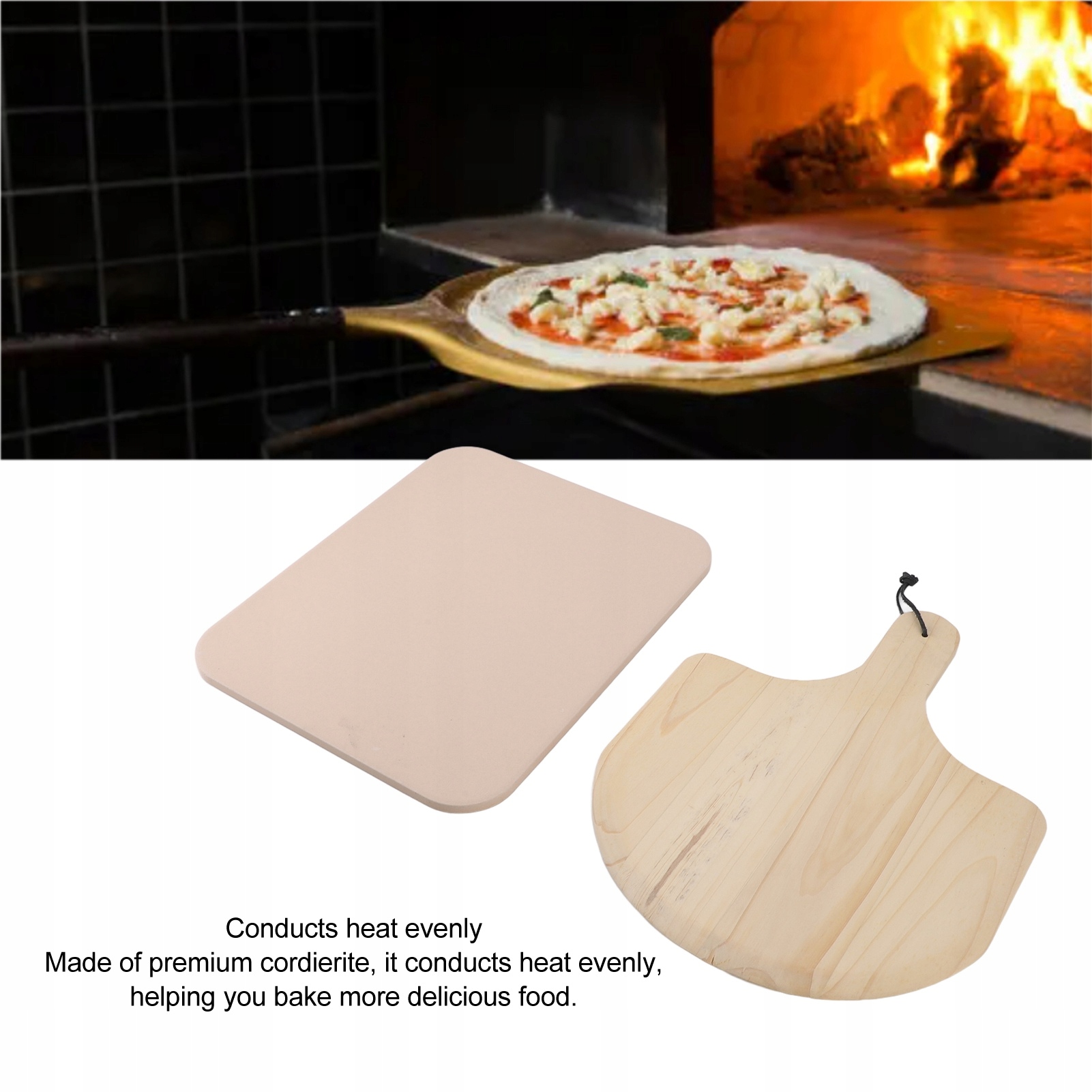2. ПРЕМІАЛЬНИЙ КАМІНЬ: камінь для піци виготовлений з високоякісного кордієриту та міцного матеріалу. Рівномірна передача тепла через камінь дозволяє випікати смачну піцу та хліб.