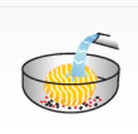 1. Помістіть інгредієнти. Помістіть спеції та овочеву суміш для супу в миску для мікрохвильової печі, а потім додайте зверху локшину.