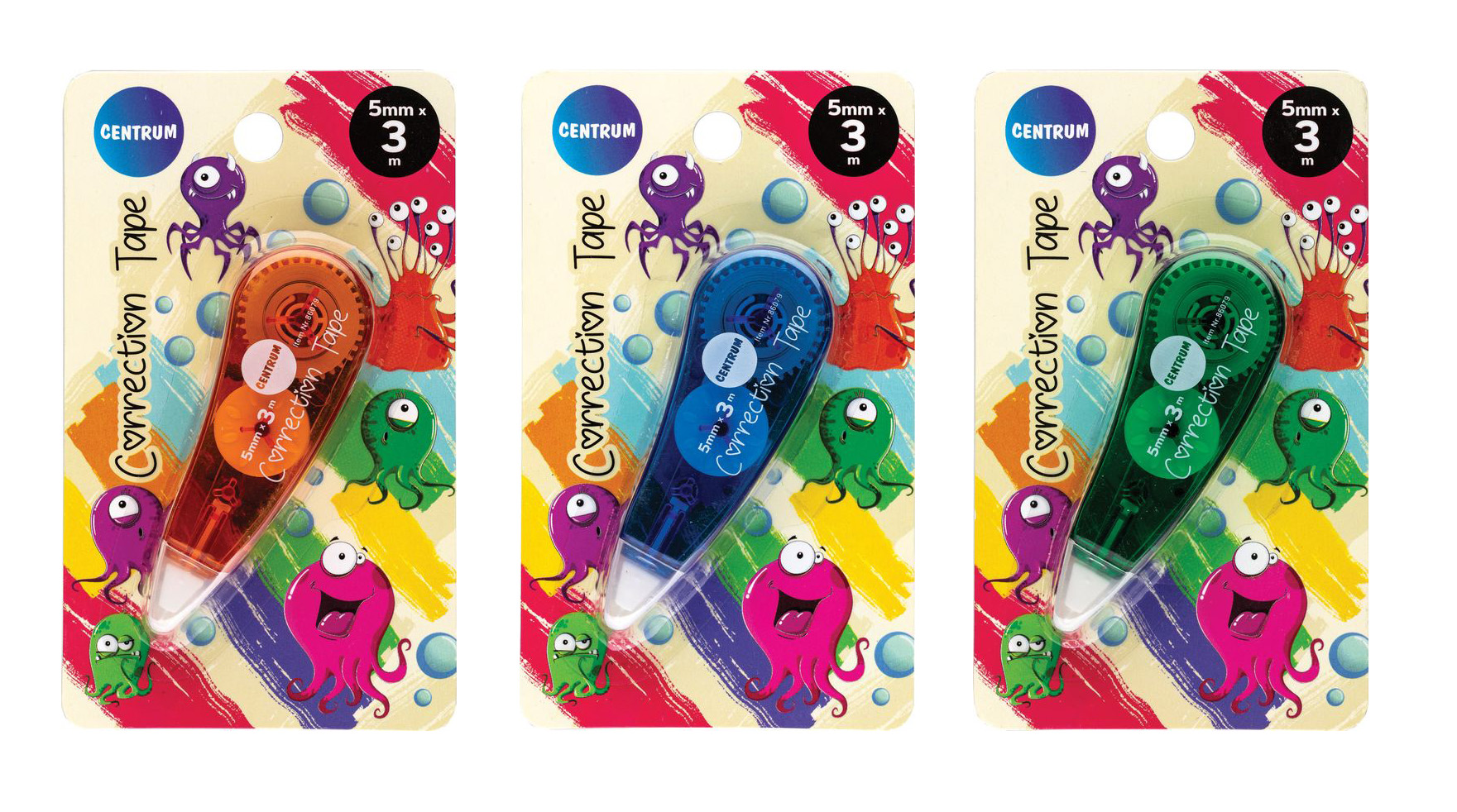 Виріб легко та швидко клеїться, тож ви можете одразу писати на ньому. Гнучкий наконечник і міцна стрічка покриті захисним покриттям і ідеально лягають у вашу руку. Коригувальна стрічка шириною 5 мм, довжиною 3 м.