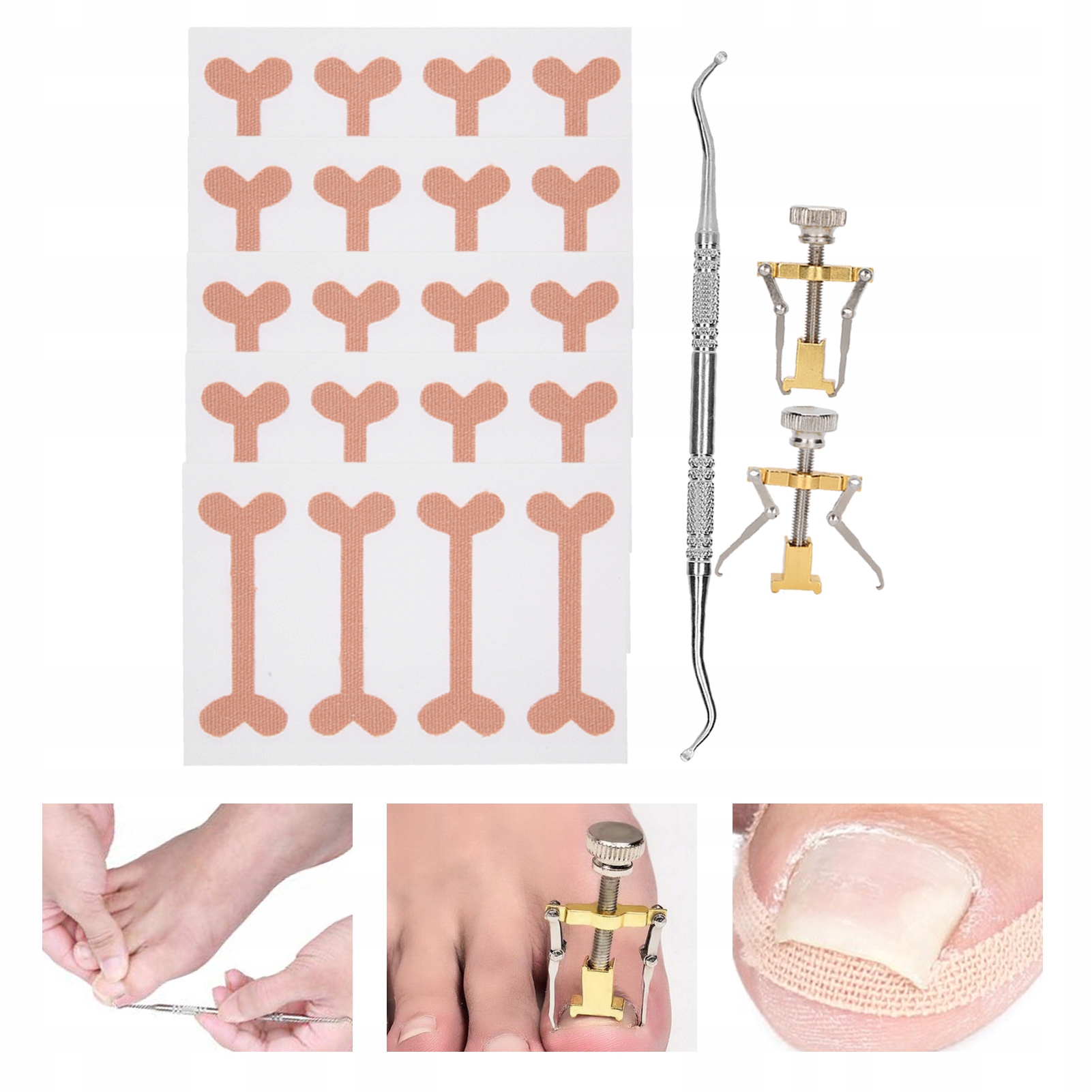 ⏺Наклейка для врослого нігтя: цей продукт має 3-шарову структуру, а зовнішній шар виготовлено з тонкого та надзвичайно гнучкого матеріалу, який добре пропускає повітря та наближається до колір шкіри. Внутрішній шар має високоеластичний тяговий ремінь, який може створювати силу пружини, щоб витягнути цвях, коли він прикріплений до поверхні нігтя. Його можна прикріпити під ніготь, щоб міцно підтримувати ніготь, який легко котиться та поступово відновлює свою нормальну кривизну. Нижній клейовий шар виготовлено з високоякісного клею, який ідеально лягає та не пошкоджує нігті.
