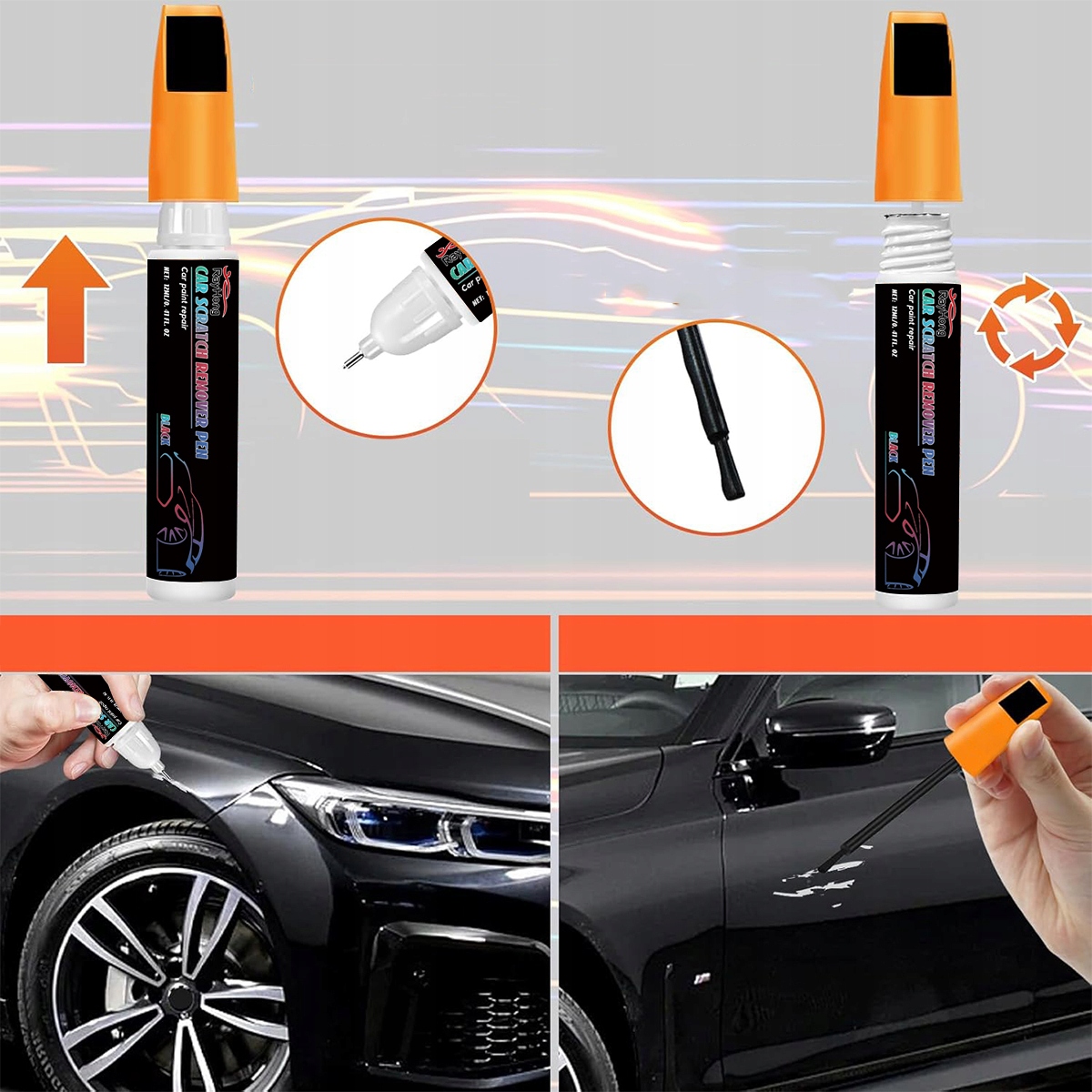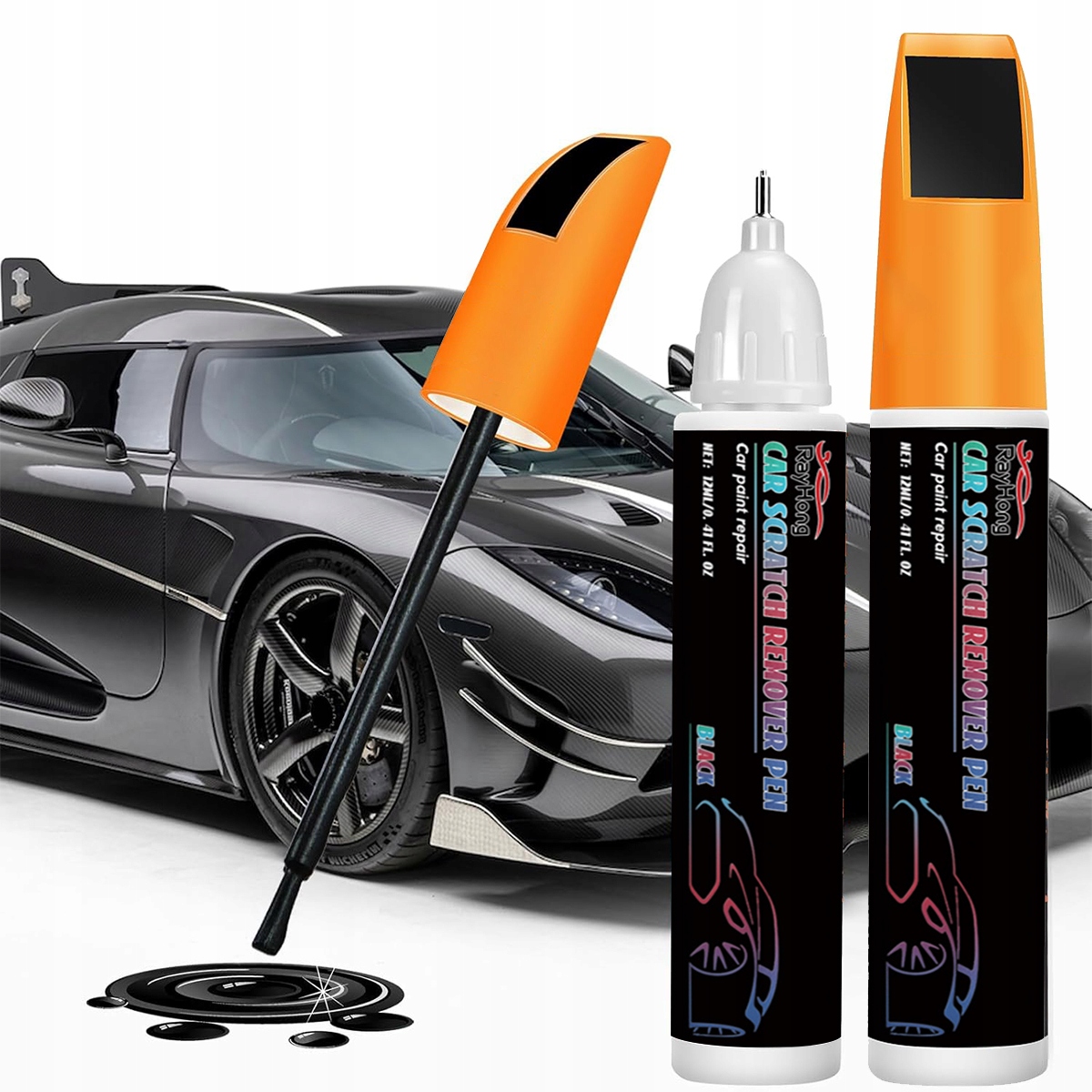 ручка для корекцій автомобіля, ручка для виправлень автомобілів Чорний килимок 12 мл, видалення подряпин з автомобілів/парканів/воріт, має високе покриття і може зняти подряпини автомобіля та кам'яні осколки (2 штуки)